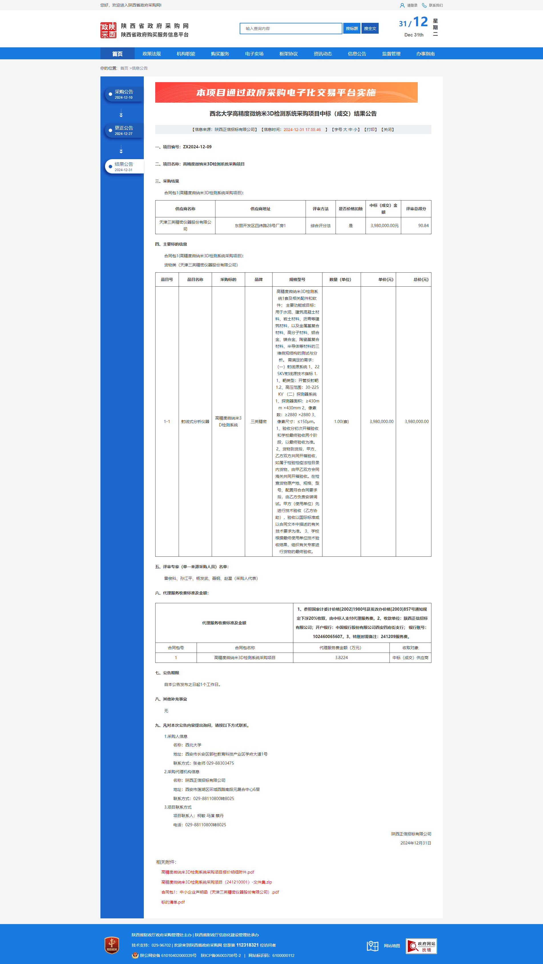 云博app官方在线入口高精度微纳米3D检测系统采购项目中标(成交)结果公告