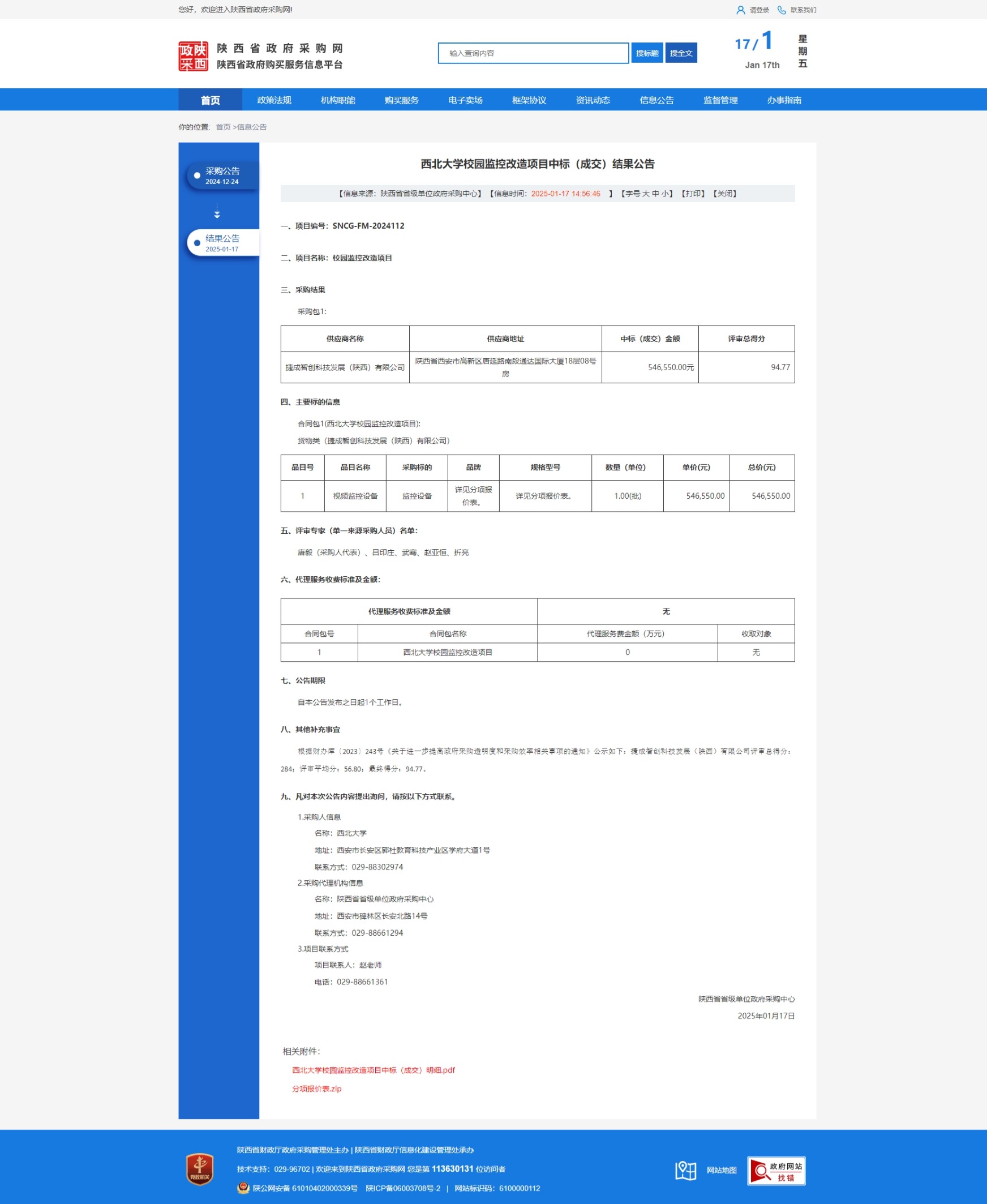 云博app官方在线入口校园监控改造项目中标(成交)结果公告 作者: 编辑:薛利娟 时间:2025-01-17 原公告链接:https://www.ccgp-shaanxi.gov.cn/freecms/site/shaanxi/ggxx/info/2025/8a69c46994554cc2019471c2fbea2f8d.html?noticeType=001021¬iceId=e7f16300-d4a1-11ef-8063-08c0eb20c666