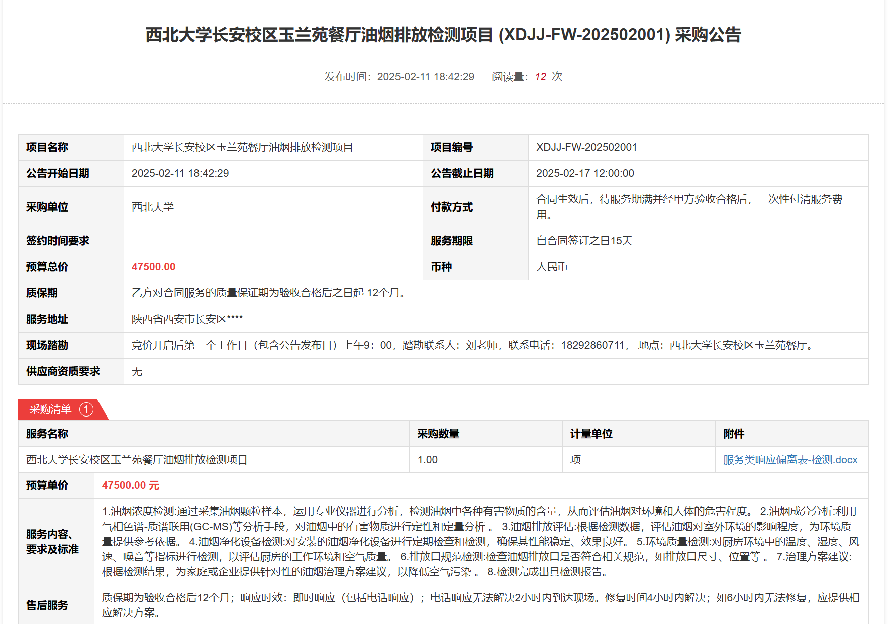 云博app官方在线入口长安校区玉兰苑餐厅油烟排放检测项目(XDJJ-FW-202502001)竞价采购公告 作者:采购与招标办公室 编辑: 时间:2025-02-11 原公告链接:https://www.ejingcai.com.cn/site/bidding/detail/16498