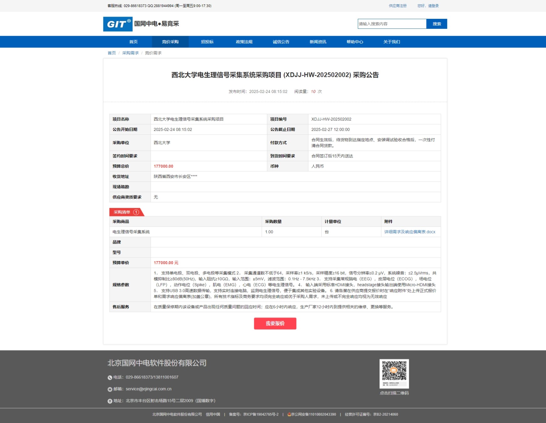 云博app官方在线入口电生理信号采集系统采购项目 (XDJJ-HW-202502002) 竞价采购公告 作者: 编辑:采购与招标办公室 时间:2025-02-24 原公告链接:https://www.ejingcai.com.cn/site/bidding/detail/16589