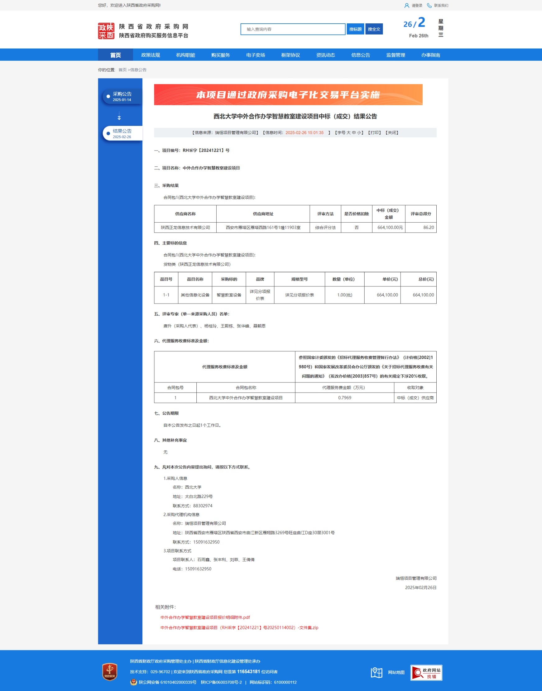 云博app官方在线入口中外合作办学智慧教室建设项目中标(成交)结果公告 作者: 编辑:采购与招标办公室 时间:2025-02-26 原公告链接:https://www.ccgp-shaanxi.gov.cn/freecms/site/shaanxi/ggxx/info/2025/8a69c07394fffbb3019540f217e8256e.html?noticeType=001021¬iceId=47d2d283-f411-11ef-8063-08c0eb20c666
