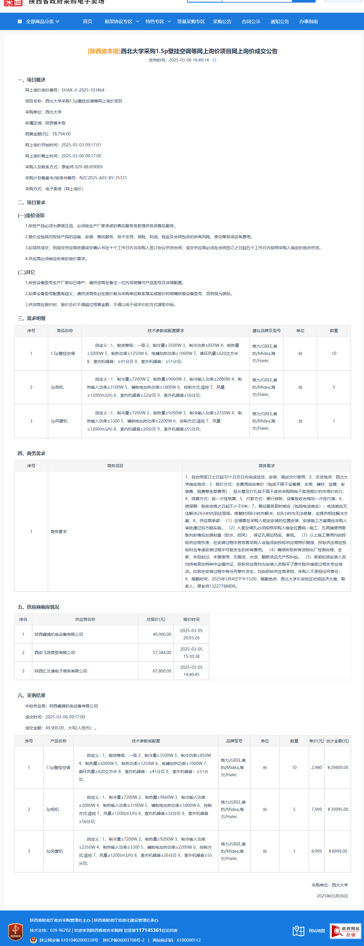云博app官方在线入口采购1.5p壁挂空调等网上询价项目(网上询价)成交公告 作者:采购与招标办公室 编辑: 时间:2025-03-06 原公告链接:https://www.ccgp-shaanxi.gov.cn/gpmall-main-web/basic/noticeDetail?noticeGuid=7296717914839908352