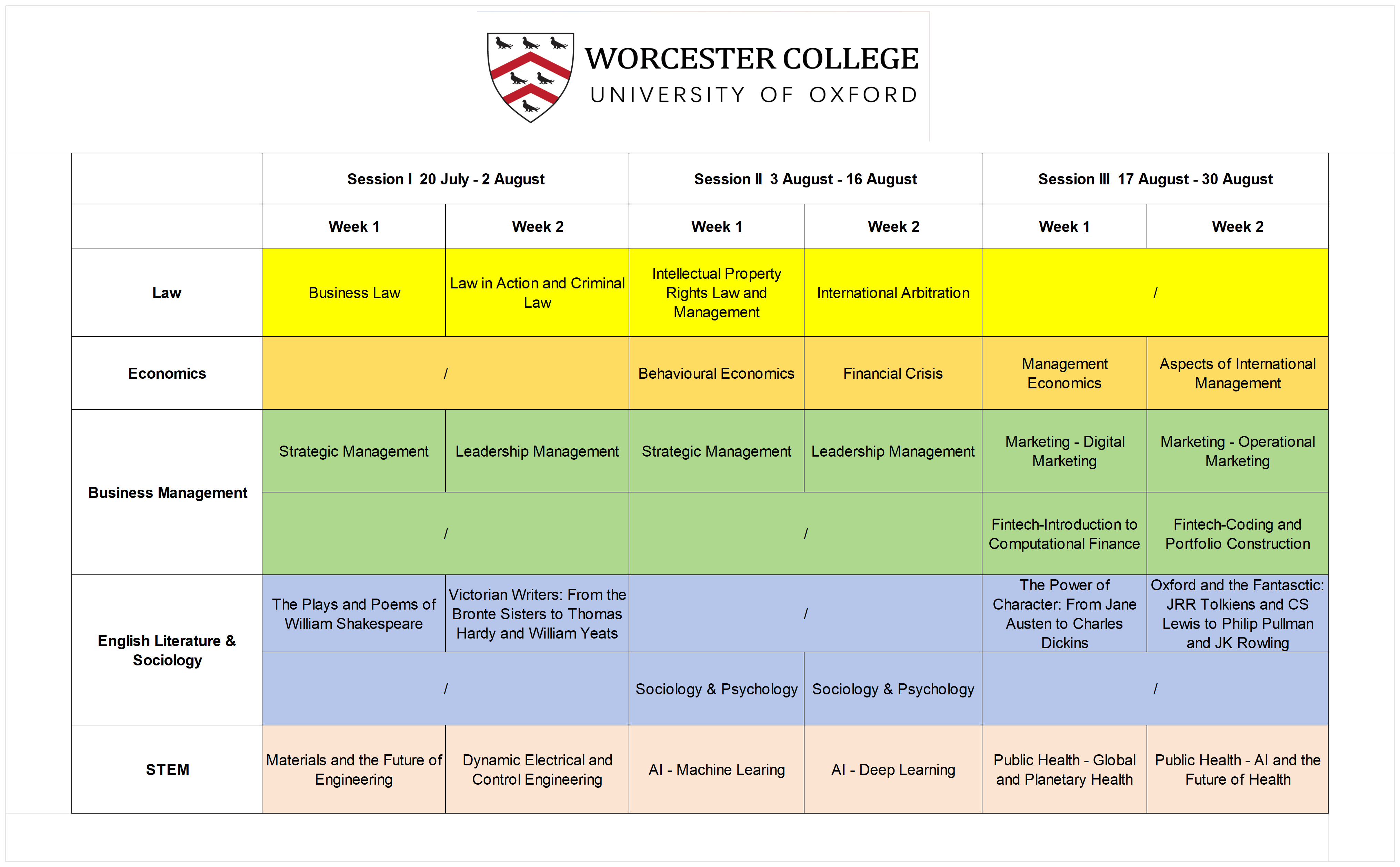 为提升学生全球竞争力,云博app官方在线入口将在“学生海外访学计划”的框架下开展系列国际交流项目,引导学生积极参与境外高水平大学线上线下课程学习与科学研究,2025年牛津大学伍斯特学院暑期项目相关信息如下: