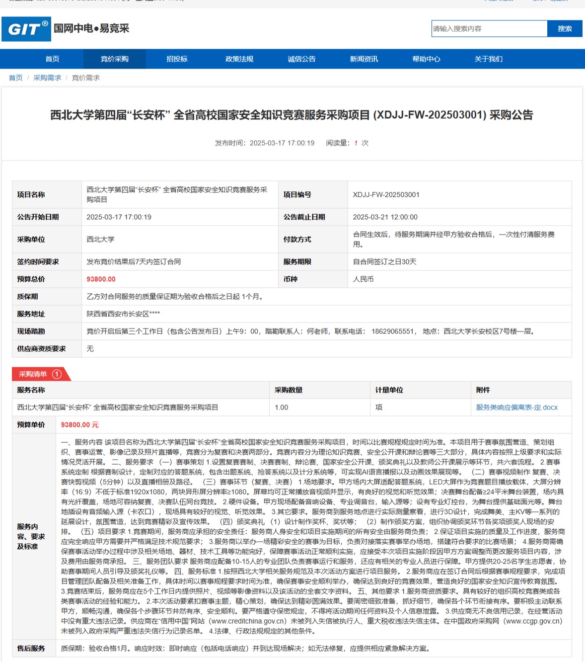 云博app官方在线入口第四届“长安杯” 全省高校国家安全知识竞赛服务采购项目(XDJJ-FW-202503001)竞价采购公告 作者:采购与招标办公室 编辑: 时间:2025-03-17 原公告链接:https://www.ejingcai.com.cn/site/bidding/detail/17009