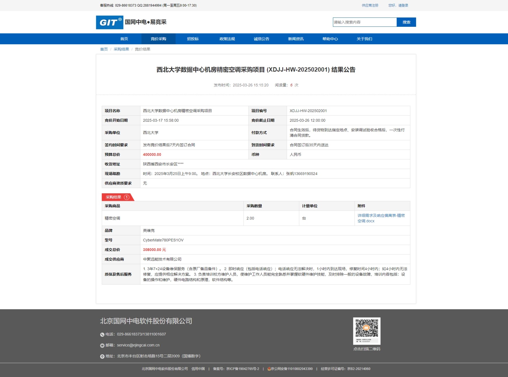 云博app官方在线入口数据中心机房精密空调采购项目 (XDJJ-HW-202502001)竞价结果公告 作者: 编辑:采购与招标办公室 时间:2025-03-26 原公告链接:https://www.ejingcai.com.cn/site/bidding/detail/17207
