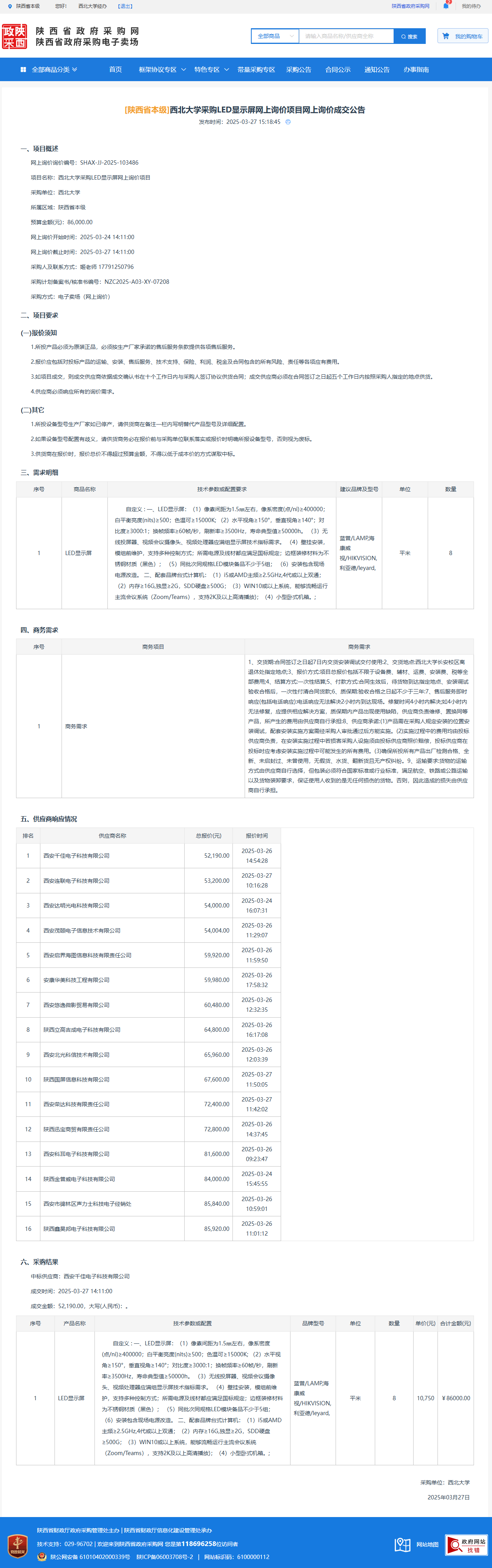云博app官方在线入口采购LED显示屏网上询价项目网上询价成交公告 作者:采购与招标办公室 编辑: 时间:2025-03-27 原公告链接:https://www.ccgp-shaanxi.gov.cn/gpmall-main-web/basic/noticeDetail?noticeGuid=7304305287710834688