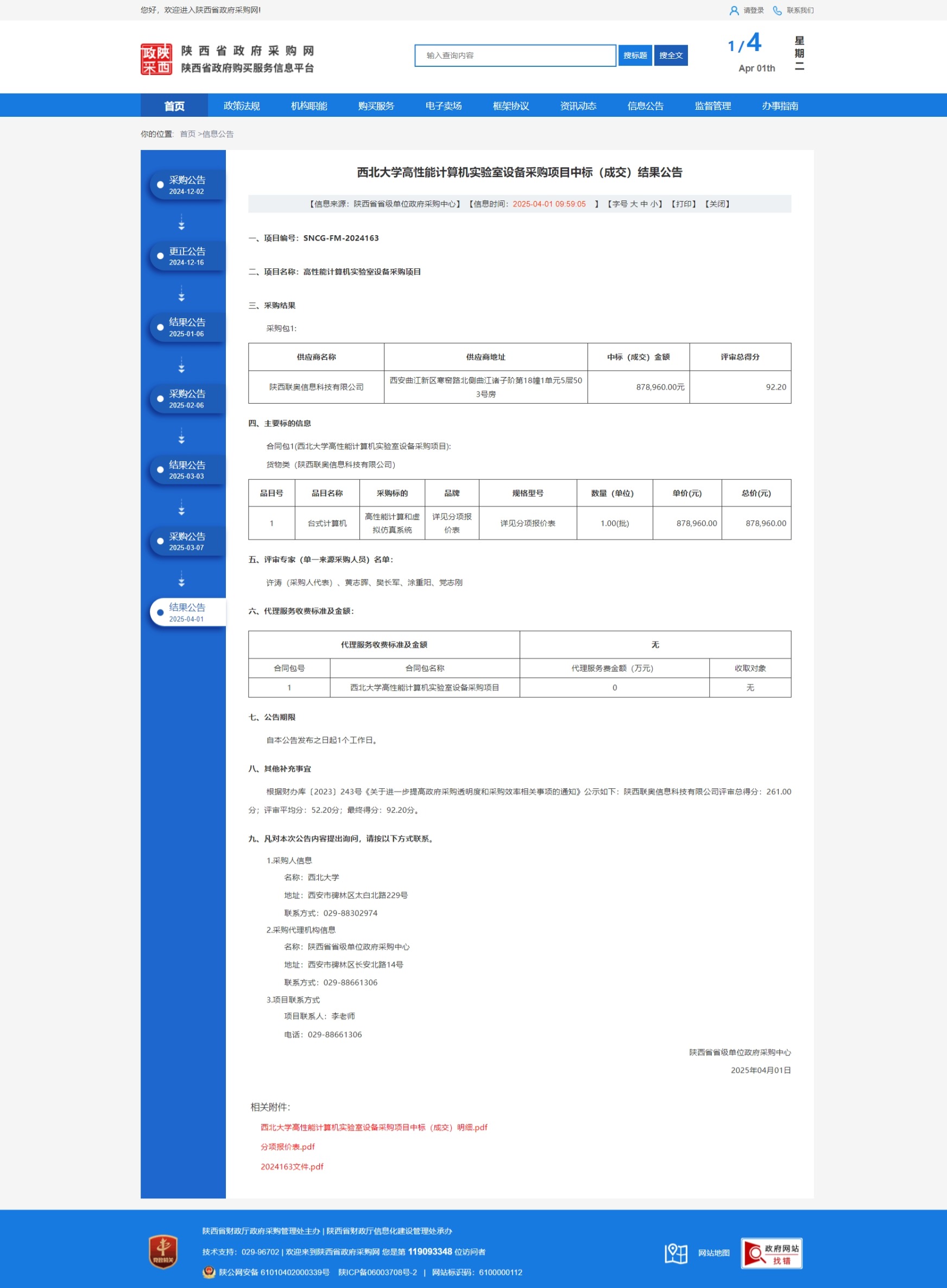 云博app官方在线入口高性能计算机实验室设备采购项目中标(成交)结果公告 作者: 编辑:采购与招标办公室 时间:2025-04-01 原公告链接:https://www.ccgp-shaanxi.gov.cn/freecms/site/shaanxi/ggxx/info/2025/8a69c0959566cd7e0195eef3776f2f16.html?noticeType=001021¬iceId=b788f147-0e9e-11f0-8063-08c0eb20c666