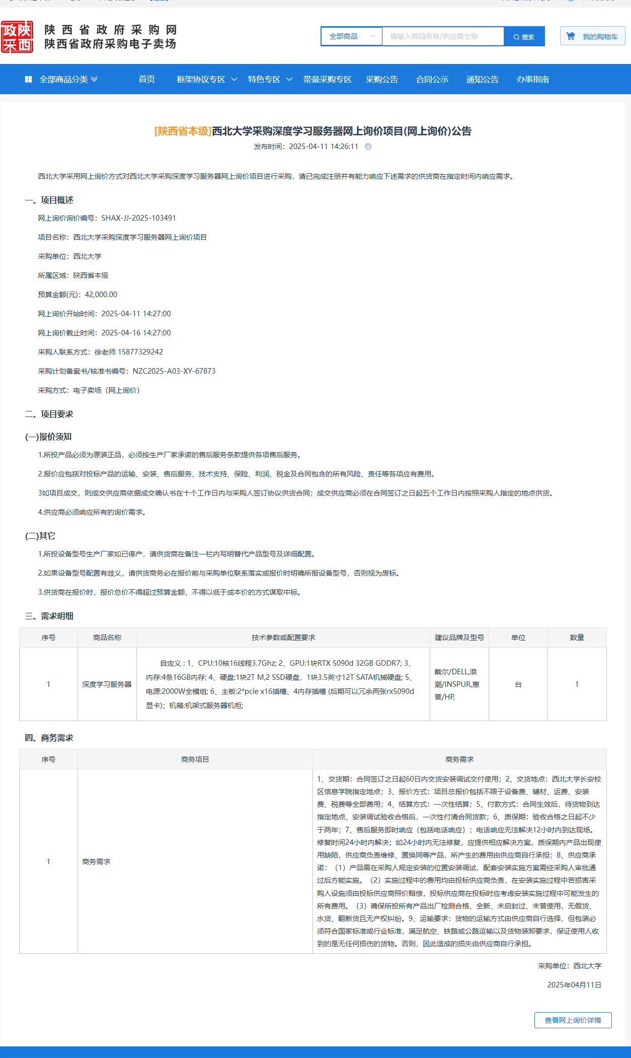 云博app官方在线入口采购深度学习服务器网上询价项目(网上询价)公告 作者:采购与招标办公室 编辑: 时间:2025-04-11 原公告链接:https://www.ccgp-shaanxi.gov.cn/gpmall-main-web/basic/noticeDetail?noticeGuid=7309727879137525760
