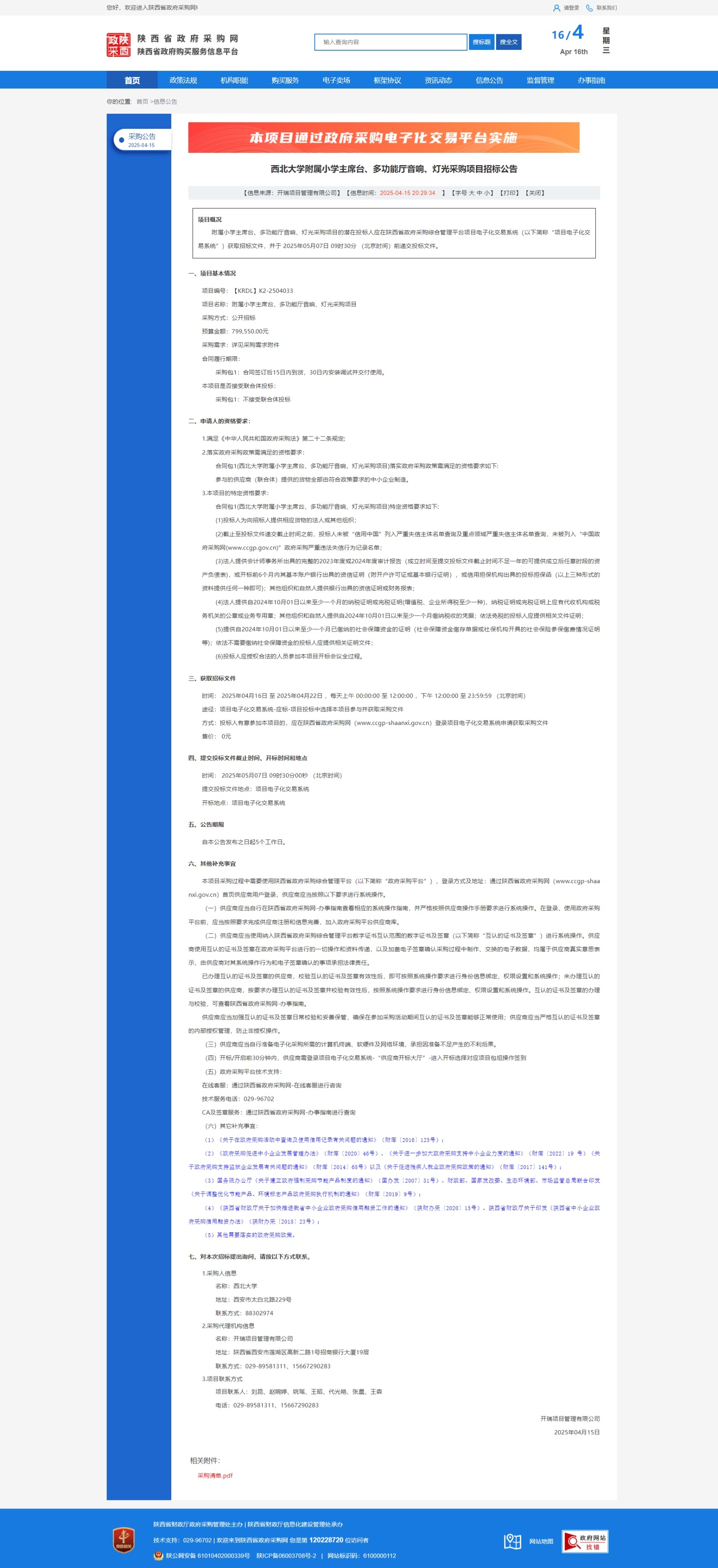 云博app官方在线入口附属小学主席台、多功能厅音响、灯光采购项目招标公告 作者: 编辑:采购与招标办公室 时间:2025-04-16 原公告链接:https://www.ccgp-shaanxi.gov.cn/freecms/site/shaanxi/ggxx/info/2025/8a69c49e9615fc7a01963929e326689b.html?noticeType=001011¬iceId=23d89ef7-19f7-11f0-8063-08c0eb20c666