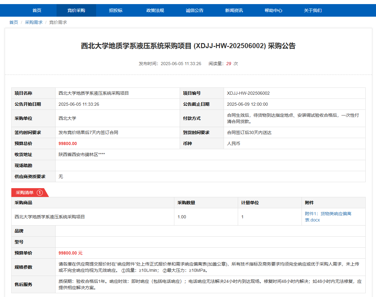 云博app官方在线入口地质学系液压系统采购项目(XDJJ-HW-202506002)竞价采购公告 作者: 编辑: 时间:2025-06-05 原公告链接:https://www.ejingcai.com.cn/site/bidding/detail/18680