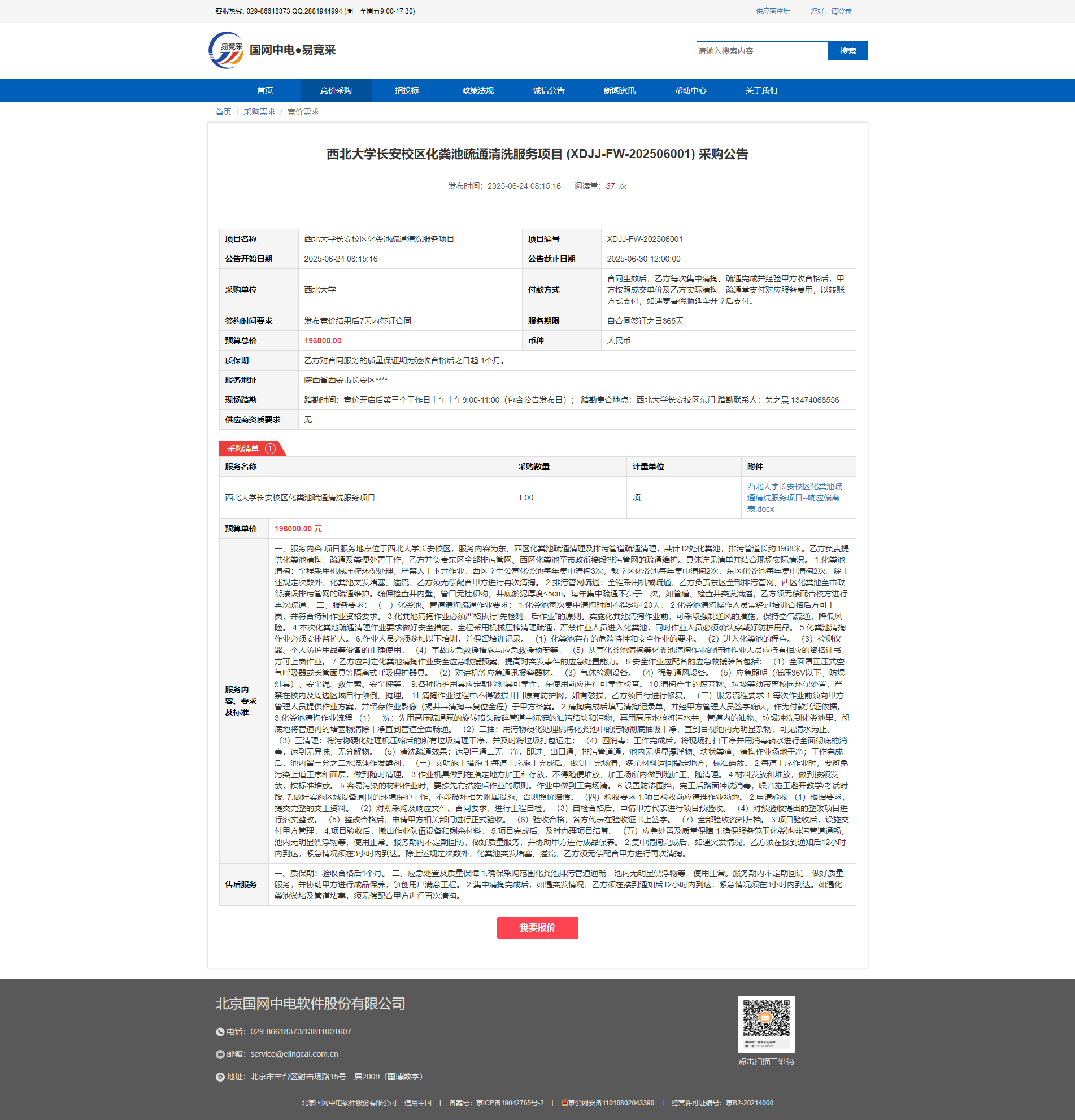 云博app官方在线入口长安校区化粪池疏通清洗服务项目 (XDJJ-FW-202506001) 采购公告