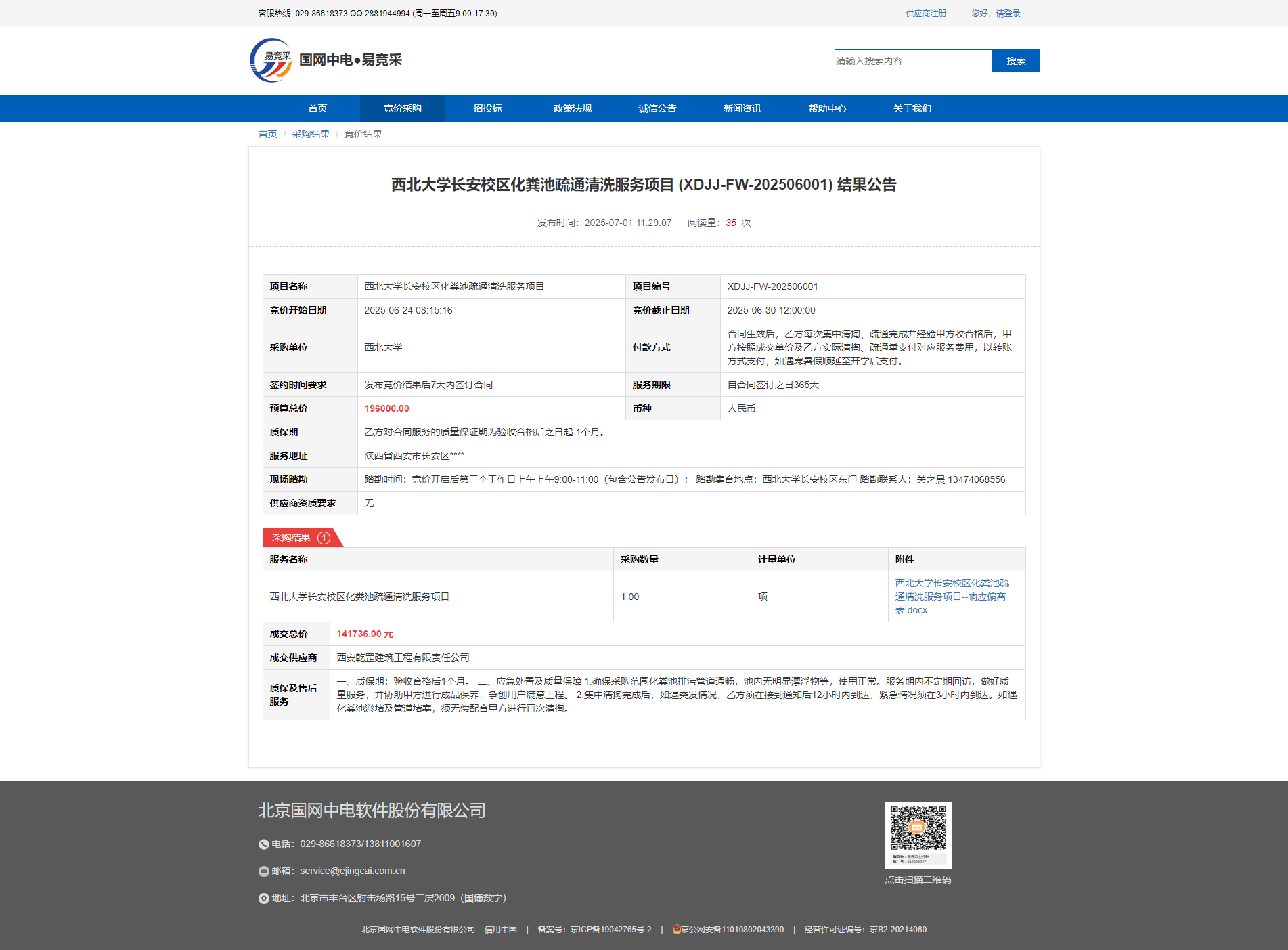 云博app官方在线入口长安校区化粪池疏通清洗服务项目 (XDJJ-FW-202506001) 结果公告