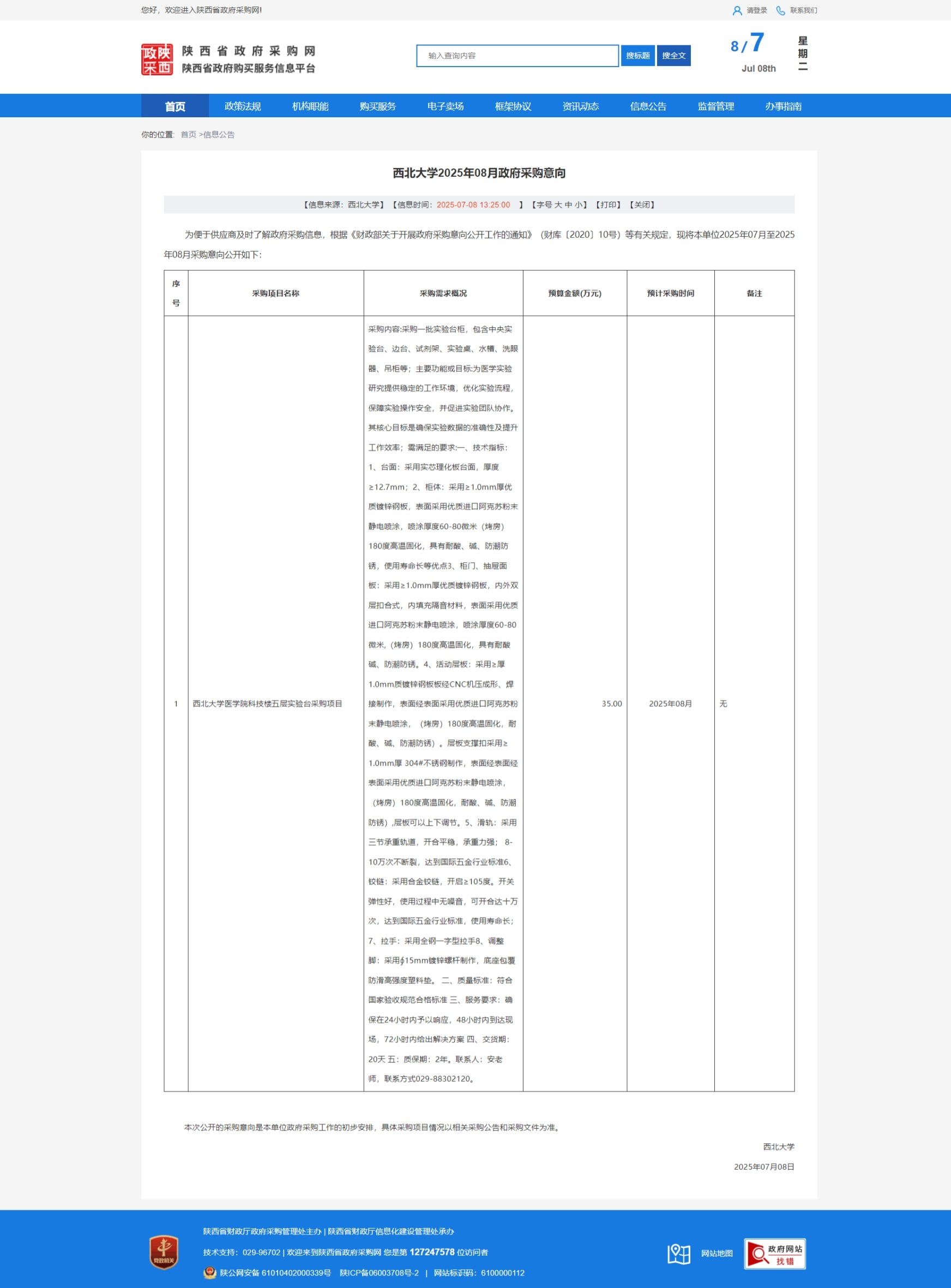 云博app官方在线入口2025年08月政府采购意向 作者: 编辑:采购与招标办公室 时间:2025-07-08 原公告链接:https://www.ccgp-shaanxi.gov.cn/freecms/site/shaanxi/ggxx/info/2025/8a69c68d97d2c4550197e87d6842455f.html?noticeType=59¬iceId=e4cb9cdd-5bbd-11f0-8063-08c0eb20c666