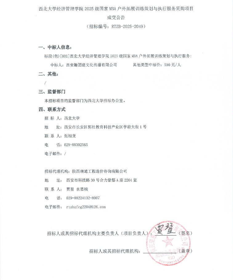 云博app官方在线入口经济管理学院2025级国家MBA户外拓展训练策划与执行服务采购项目成交公告