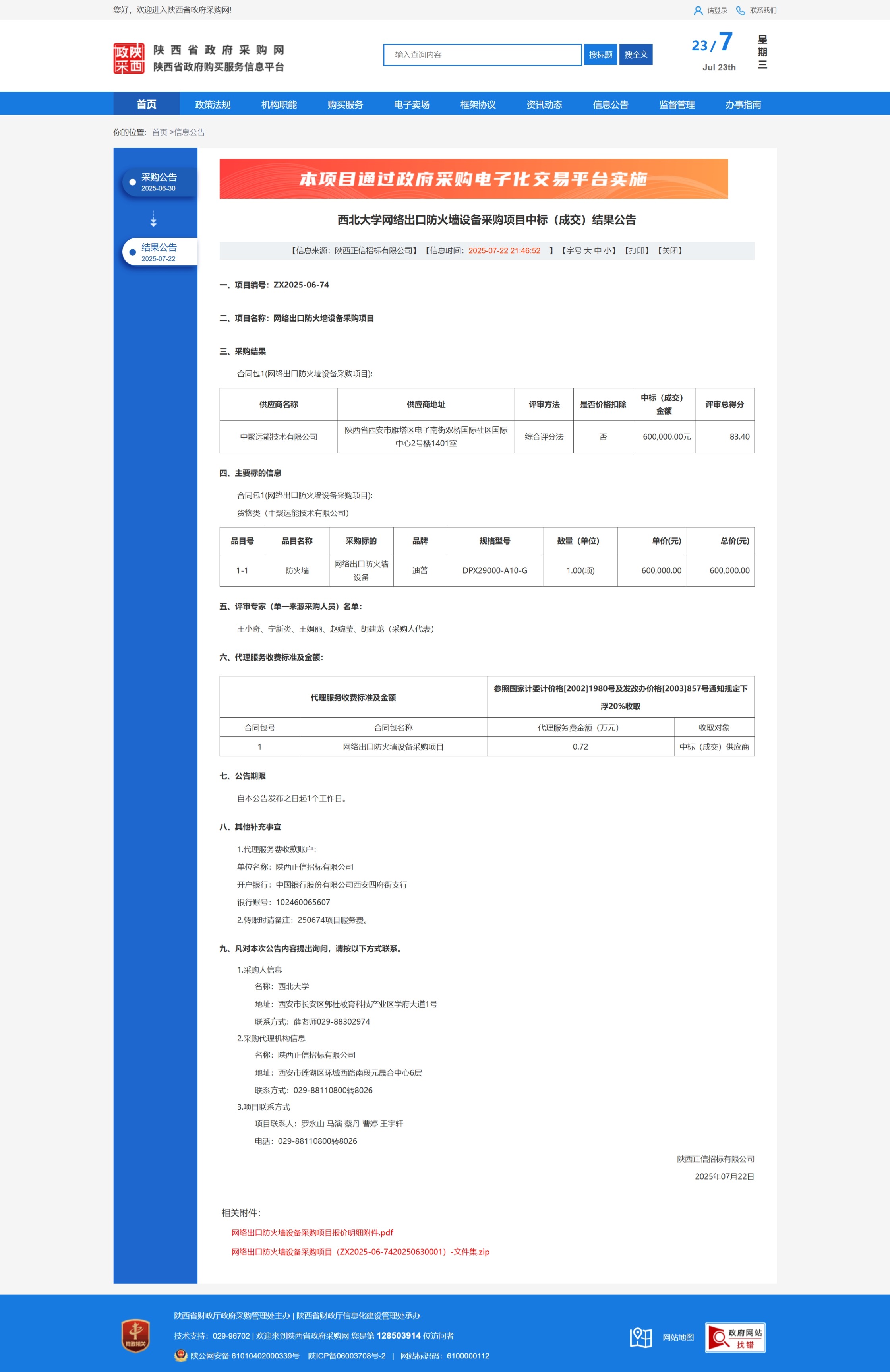 云博app官方在线入口网络出口防火墙设备采购项目中标(成交)结果公告 作者: 编辑:采购与招标办公室 时间:2025-07-23 原公告链接:https://www.ccgp-shaanxi.gov.cn/freecms/site/shaanxi/ggxx/info/2025/8a69c8f397dc839d01983234be5949f6.html?noticeType=001021¬iceId=5985f208-6704-11f0-8063-08c0eb20c666