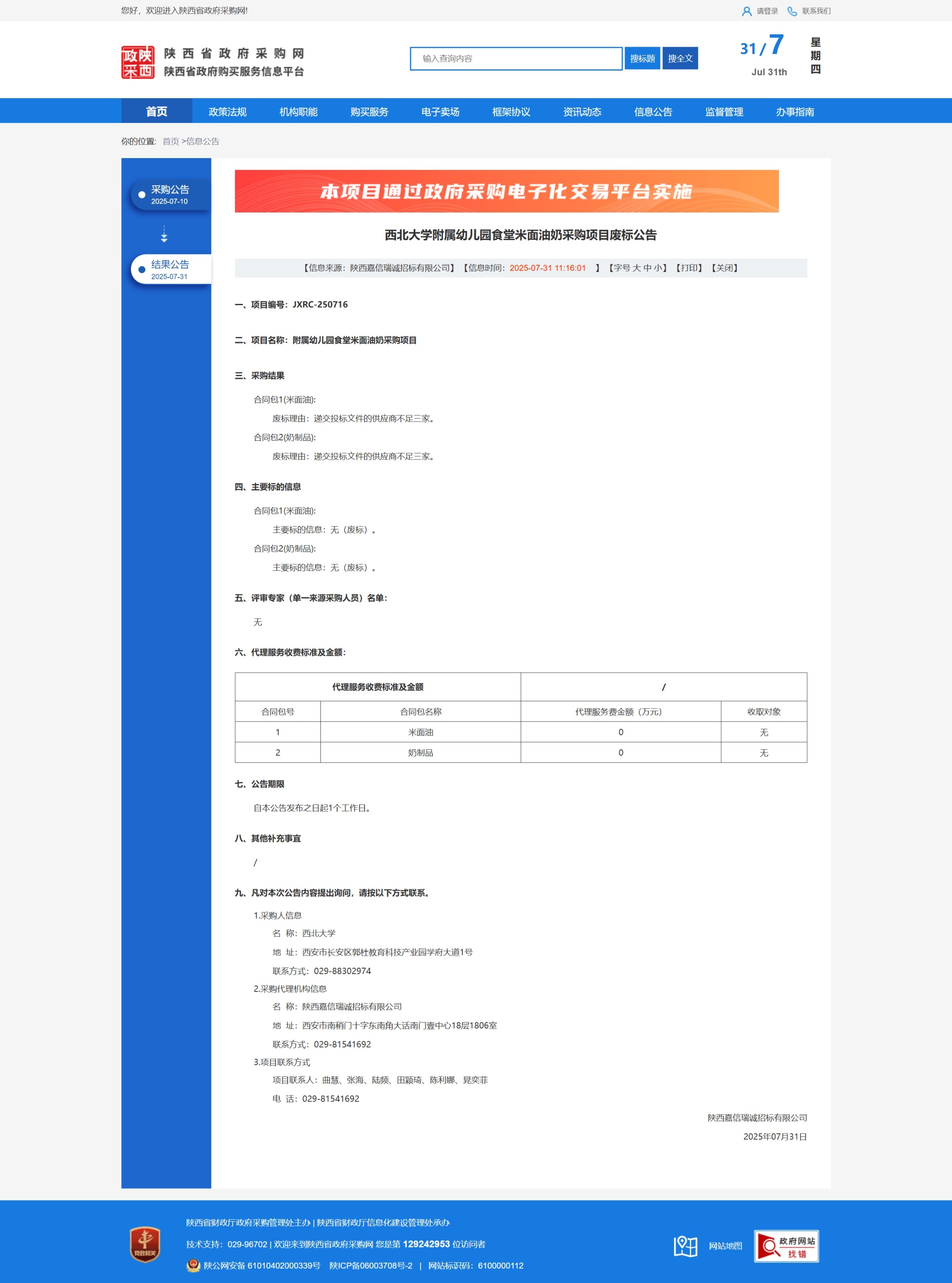 云博app官方在线入口附属幼儿园食堂米面油奶采购项目废标公告
