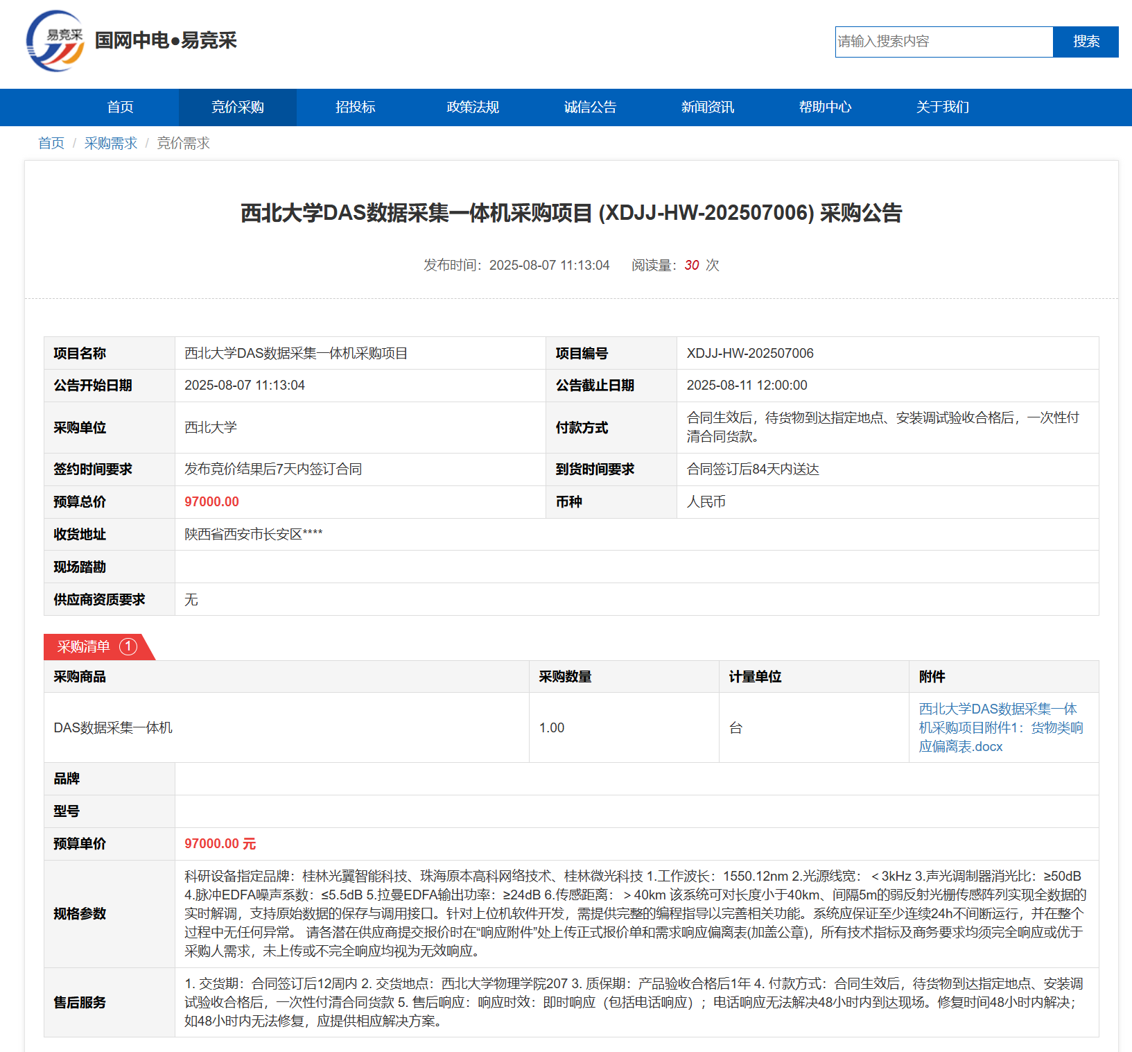 云博app官方在线入口DAS数据采集一体机采购项目(XDJJ-HW-202507006)竞价采购公告