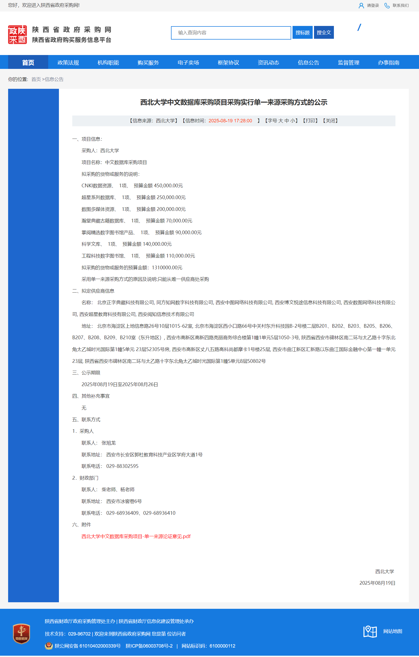 云博app官方在线入口中文数据库采购项目采购实行单一来源采购方式的公示