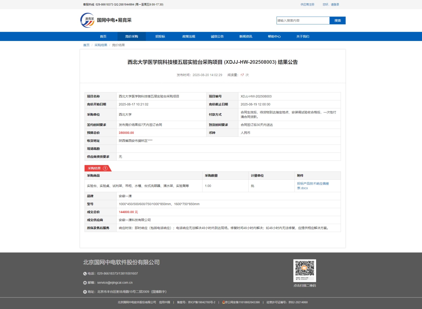 云博app官方在线入口医学院科技楼五层实验台采购项目 (XDJJ-HW-202508003) 结果公告 作者: 编辑:采购与招标办公室 时间:2025-08-20 原公告链接:https://www.ejingcai.com.cn/site/bidding/detail/20040