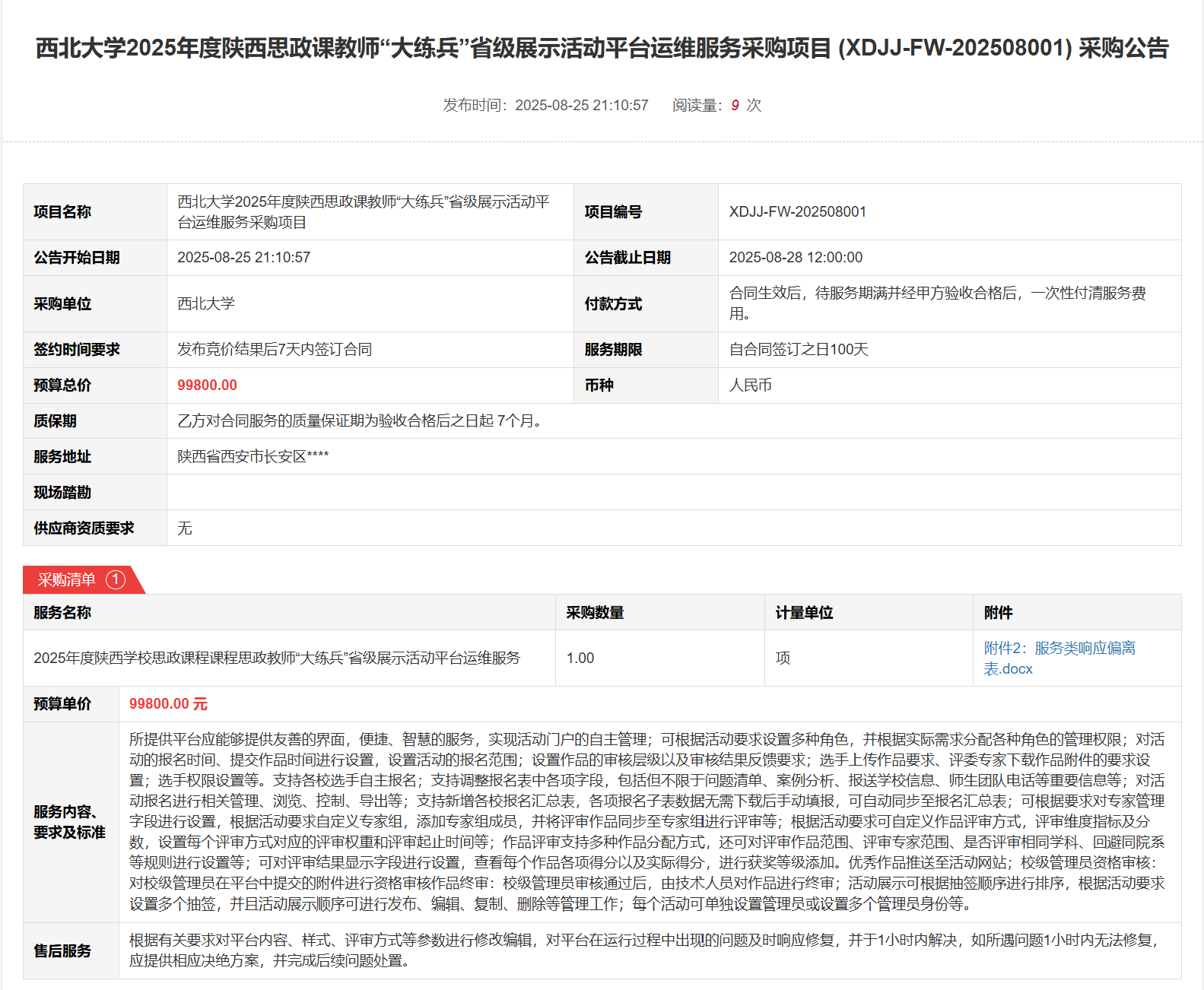 云博app官方在线入口2025年度陕西思政课教师“大练兵”省级展示活动平台运维服务采购项目(XDJJ-FW-202508001)竞价采购公告 作者:采购与招标办公室 编辑: 时间:2025-08-25 原公告链接