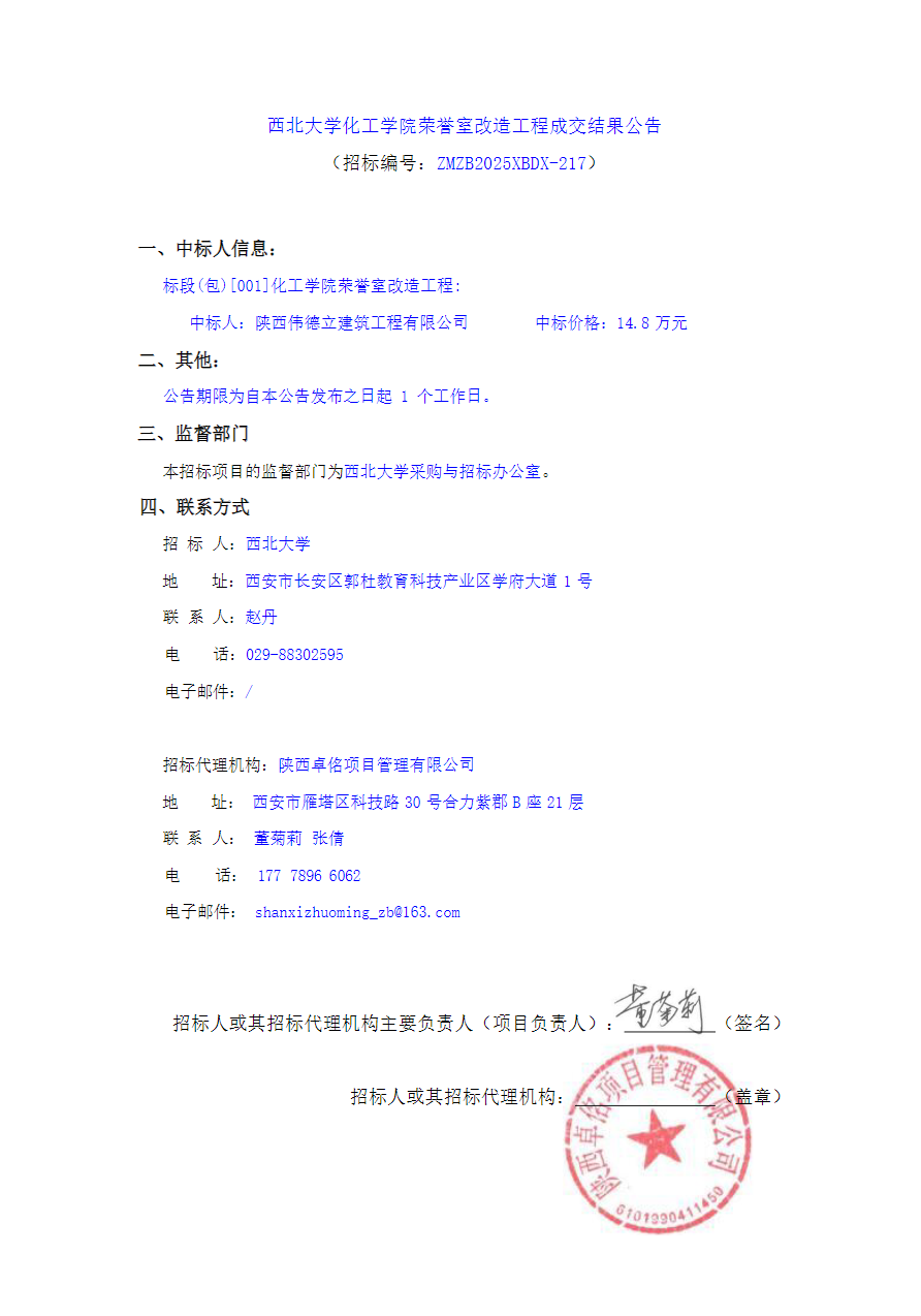 云博app官方在线入口化工学院荣誉室改造工程成交结果公告