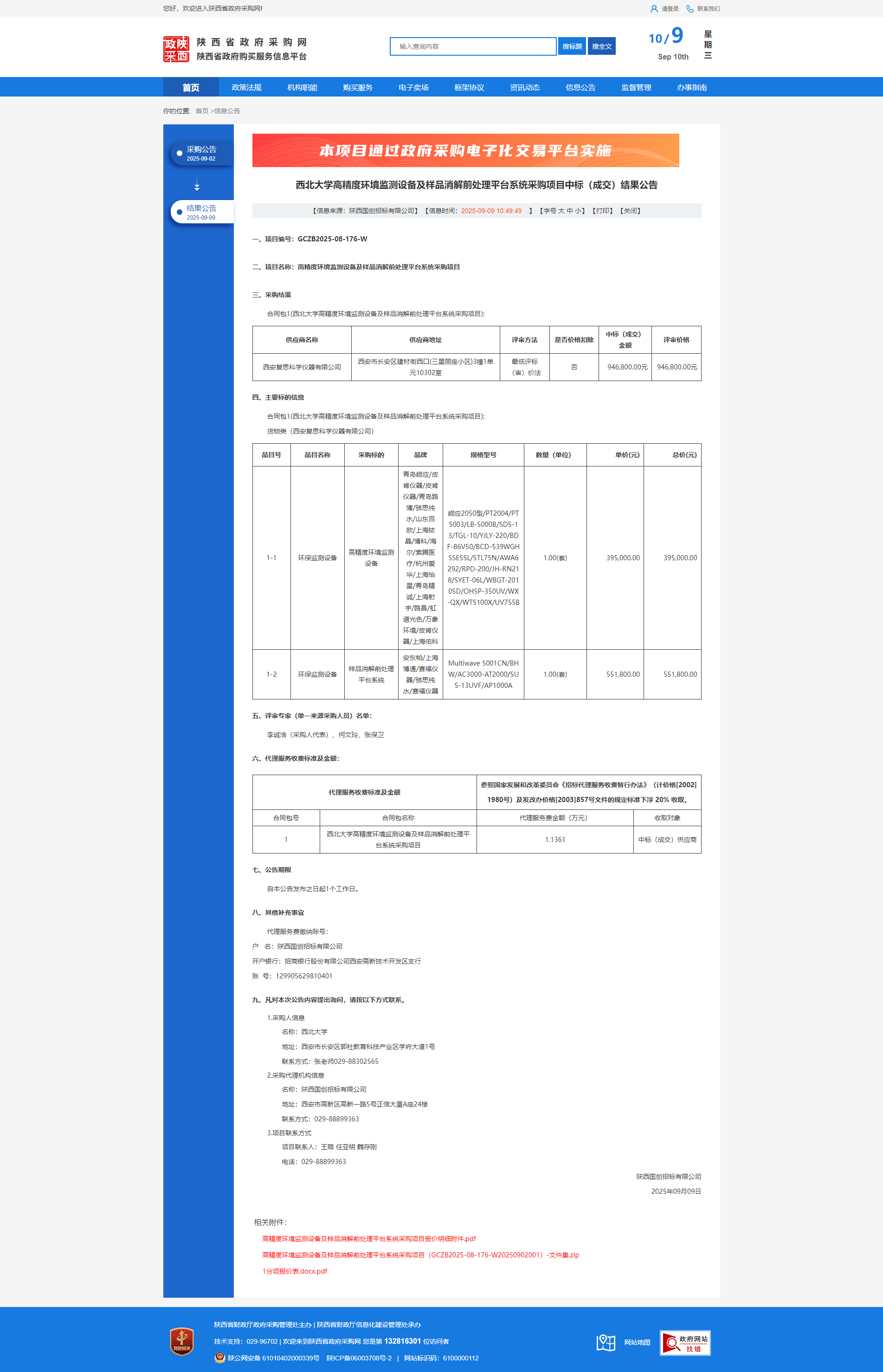 云博app官方在线入口高精度环境监测设备及样品消解前处理平台系统采购项目中标(成交)结果公告