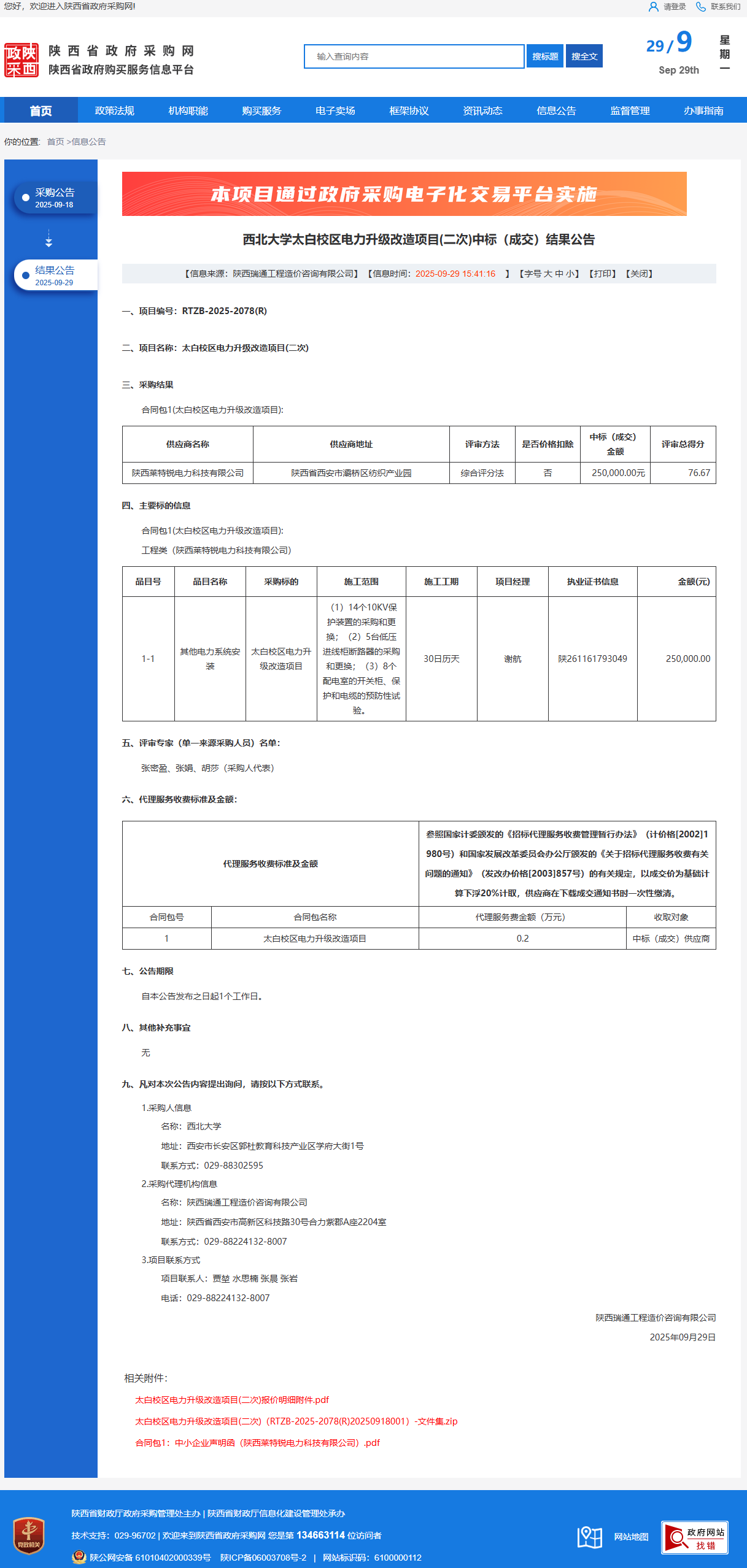 云博app官方在线入口太白校区电力升级改造项目(二次)中标(成交)结果公告