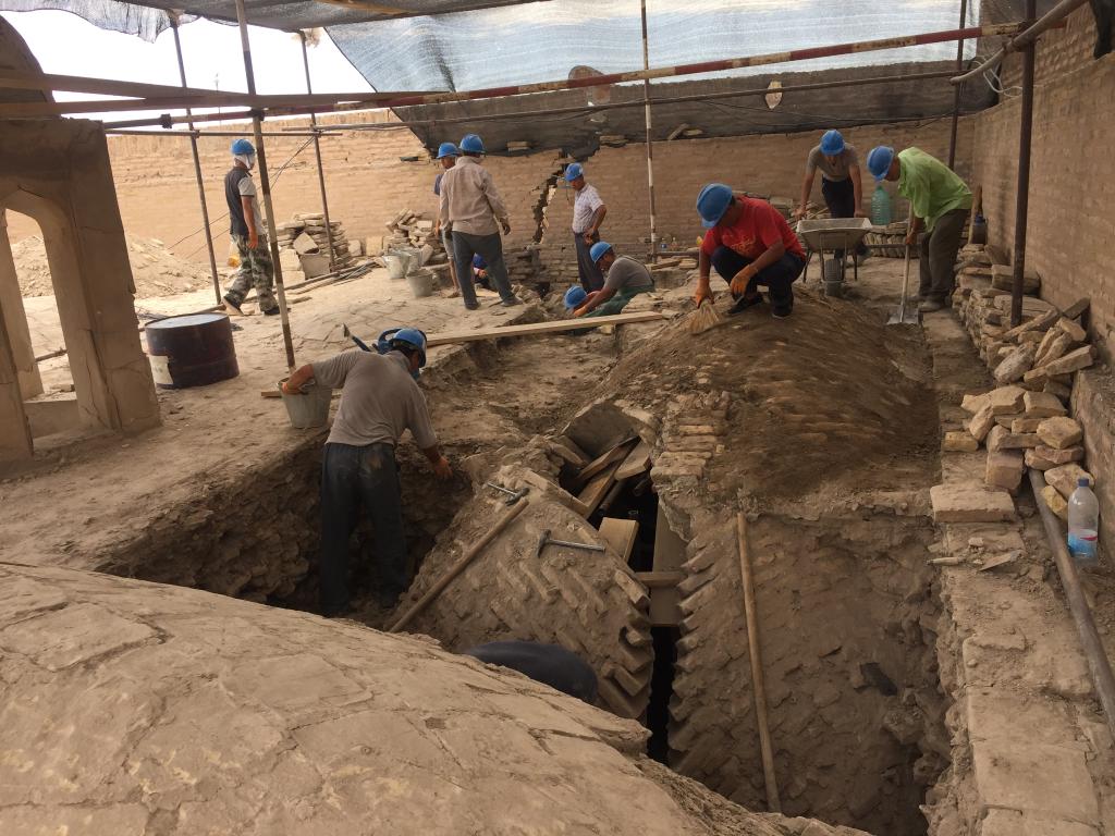 这座千年古城地处乌兹别克斯坦西南部,曾是古丝绸之路上重要的东西方交汇之地,是乌兹别克斯坦第一处世界文化遗产,有“博物馆天堂”的美誉。城里保存着数十处重点保护历史文化遗迹,部分已年久失修。中方选择了修复需求最迫切、难度和技术要求也最高的阿米尔·图拉经学院和哈桑·穆拉德库什别吉清真寺开展保护工作,并对周围环境进行修复整治。