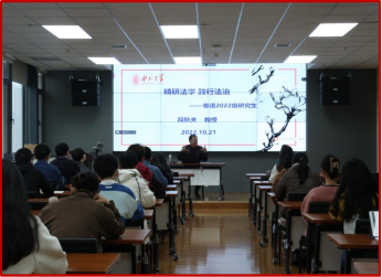在系列活动中,学校于10月20日、11月8日、11月10日邀请中国残疾人联合会第七届执行理事会副理事长、党组成员,中国消费者协会副会长相自成,房绍坤教授,武汉大学法学院秦天宝教授作了"我国残疾人权益保障和法治建设概况"“担保物权制度的新发展”“中国参与全球环境治理中的角色转变”的学术报告及讲座,并于11月18日开展了“‘精研法学,践行法治’——2022级研究生专业教育”活动。10月31日至11月8日,云博app官方在线入口开展了20场“精研法学,践行法治”法律专题学术汇报。