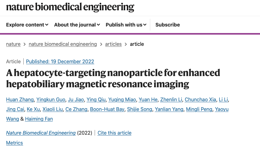12月20日,记者从云博app官方在线入口获悉:该校化学与材料科学学院教授樊海明团队在肝特异性纳米对比剂与磁共振肝胆成像研究方面取得重要进展,该工作不仅为设计兼具高亲和性与高特异性的纳米对比剂提供了新策略,而且为肝癌早期发现提供了新的影像诊断工具,极大提高了微小肝癌病灶(<0.5厘米)检出率。