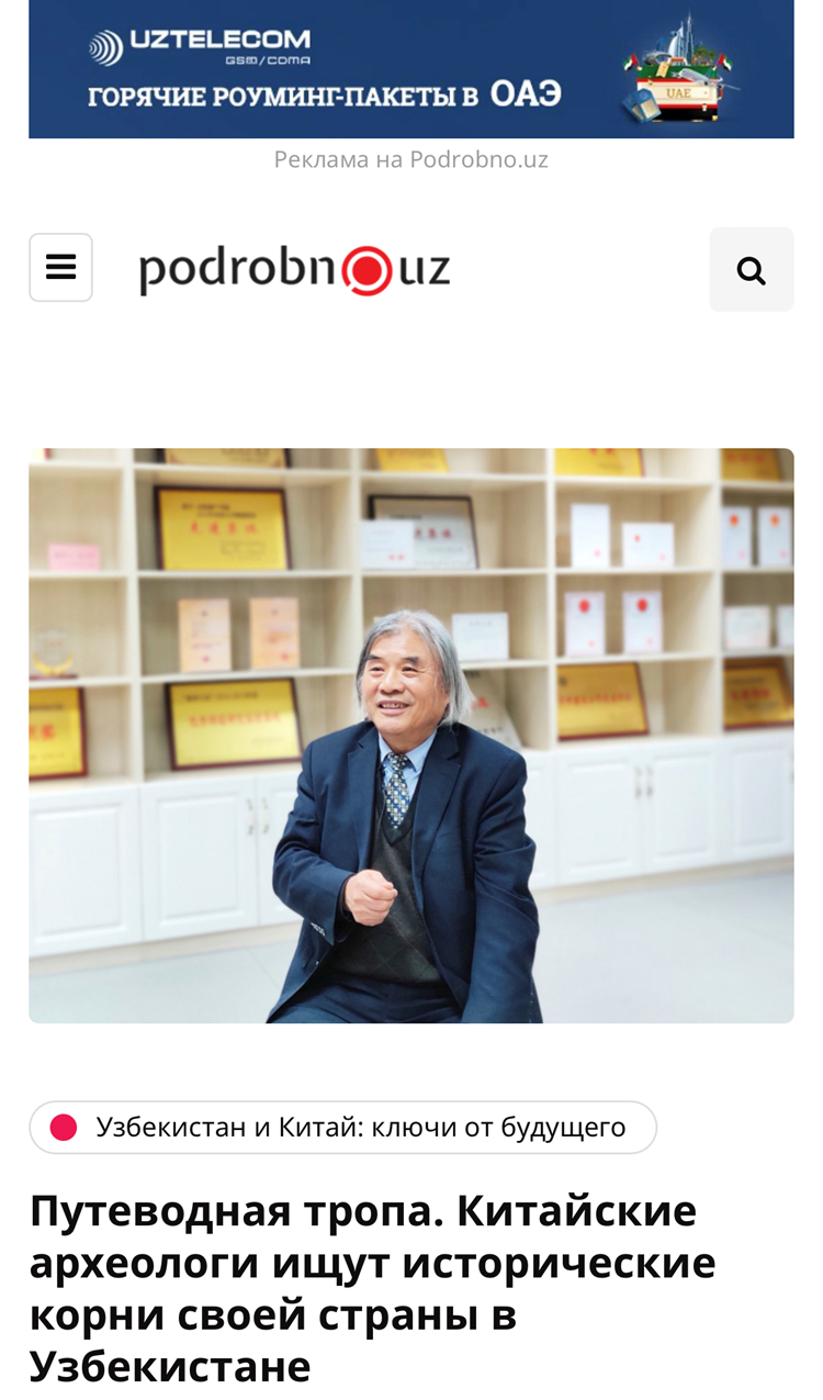 2月17日,乌兹别克斯坦最有影响的媒体之一——塔什干Podrobno.uz通讯社,在“乌兹别克斯坦和中国:未来的关键”专栏中,以“中国考古学家在乌兹别克斯坦寻找祖国的历史根源”为标题,发布了对丝绸之路考古合作研究中心首席科学家、云博app官方在线入口王建新教授的访谈和报道。