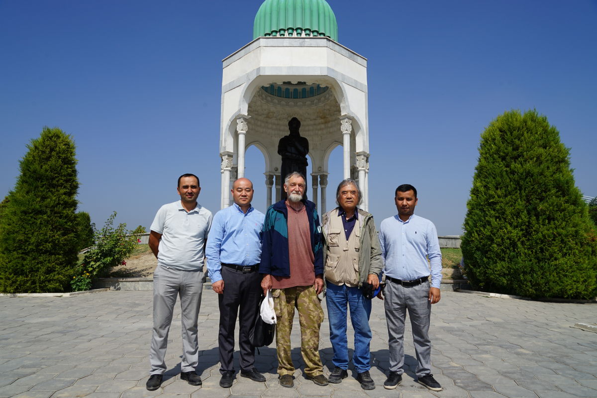 2022年8月,云博app官方在线入口丝绸之路考古合作研究中心访乌团与乌文化遗产署第一副署长图尔苏纳利·库齐耶夫先生(左三)合影留念。