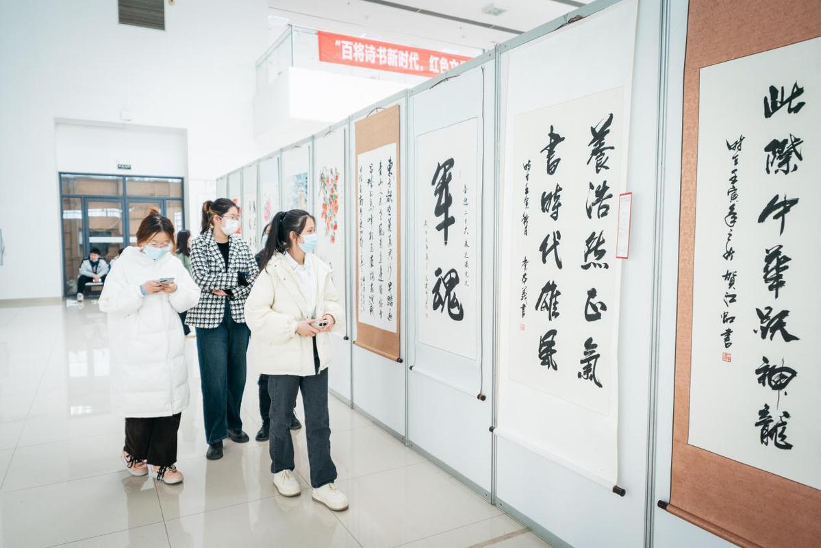 传承中华优秀传统文化,夯实理想信念之基,弘扬革命英雄之气,3月17日,“百将诗书新时代,红色文化进校园”主题书法展在云博app官方在线入口长安校区开幕。