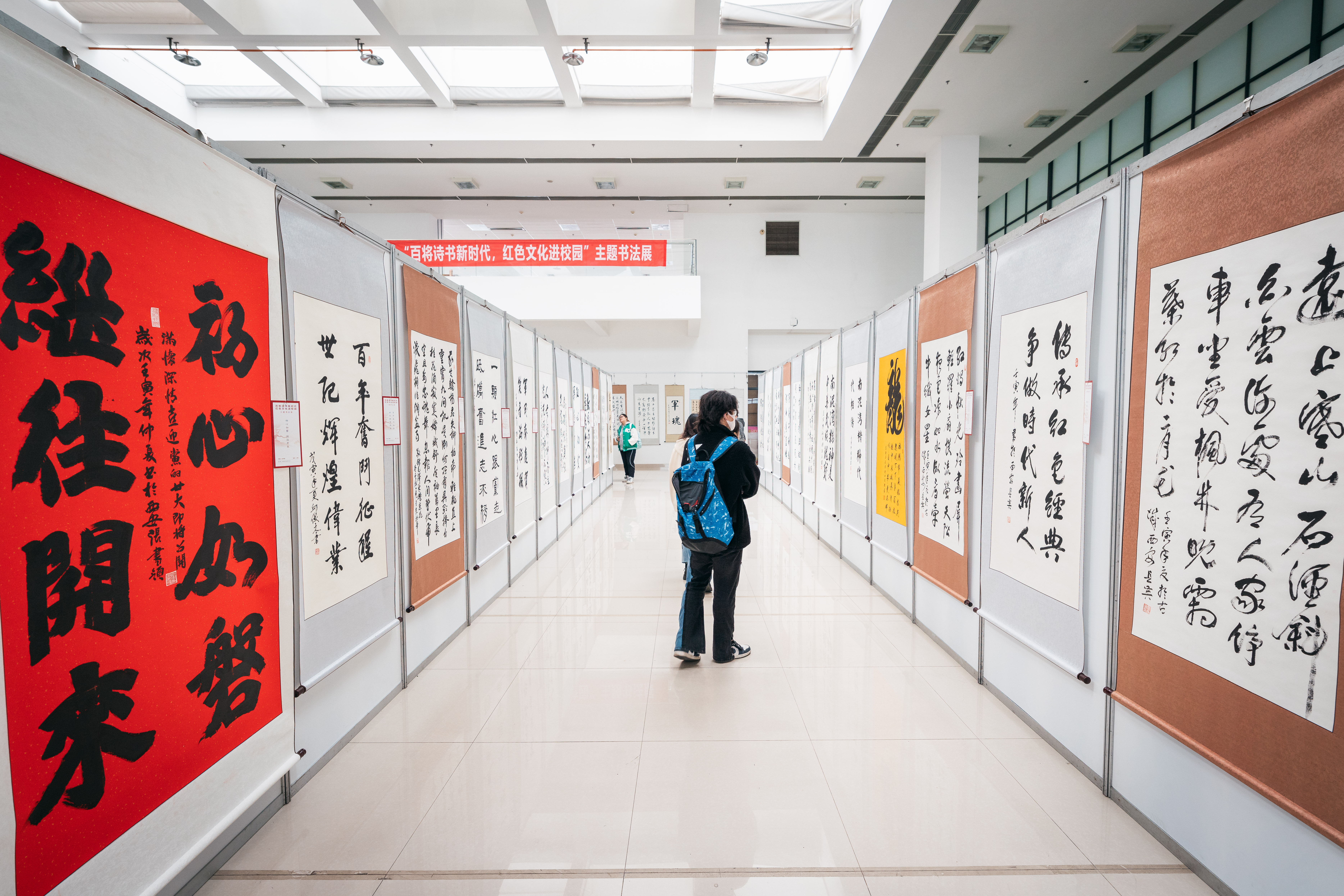 赵作纽在致辞中指出,此次书法展既是弘扬中华优秀传统文化的艺术盛宴,也是开展以爱国主义为核心的革命传统教育、国防教育的生动教材。学校将以这次活动为契机,进一步铭记红色历史、传承红色基因、弘扬革命精神,着力培养有人文情怀、社会责任、创新能力和国际视野,全面发展的现代化人才。