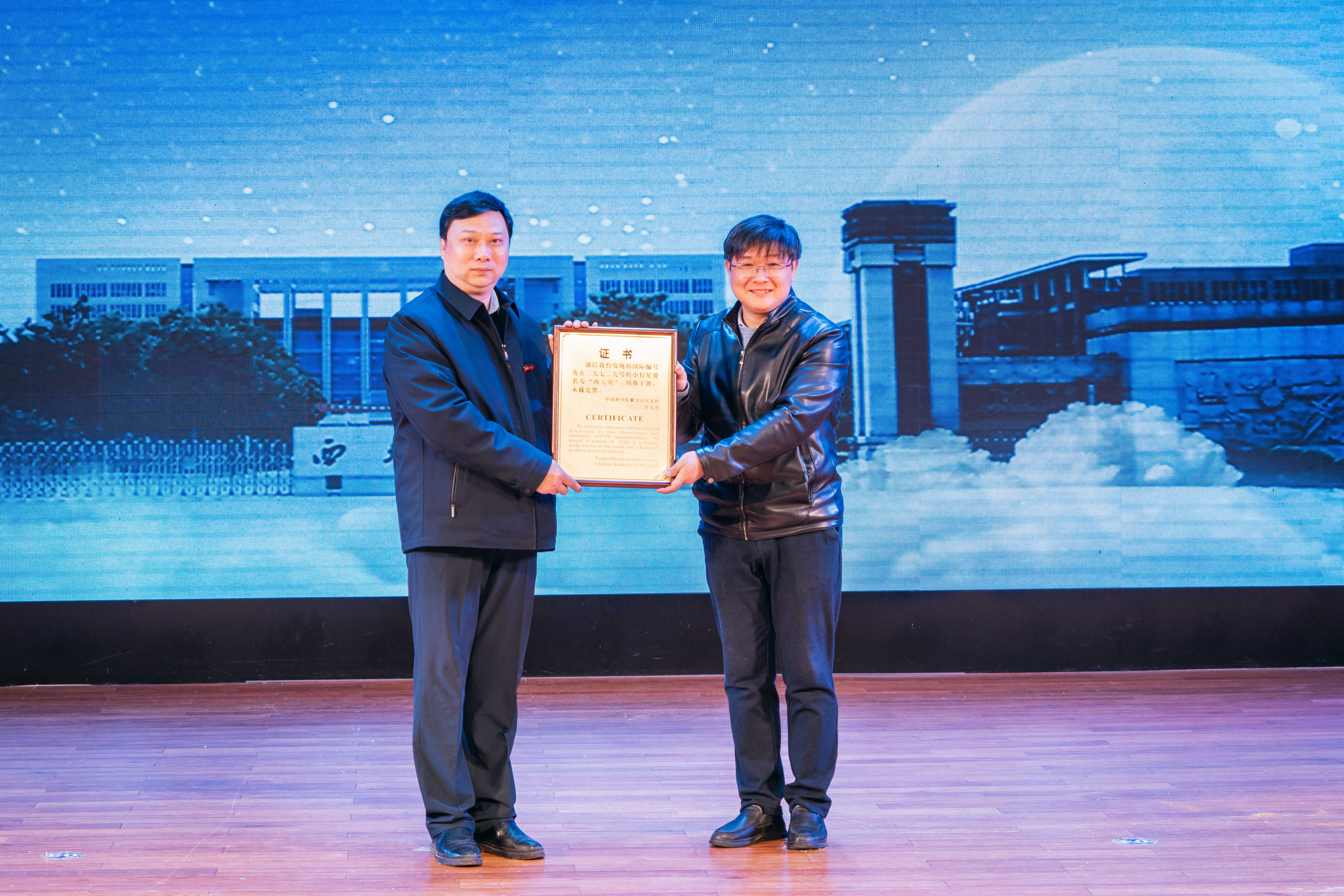 吴雪峰向云博app官方在线入口赠送“Xida”星证书、命名公报,赖绍聪、张远军代表学校接受相关资料。