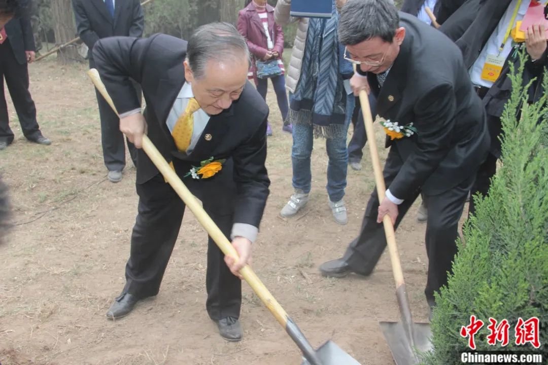 2013年4月4日,台湾新党主席郁慕明率“台湾青年清明黄陵寻根祭祖团”参加癸巳年清明公祭轩辕黄帝典礼,并在桥山举行“思源林”种植活动。阿琳娜 摄