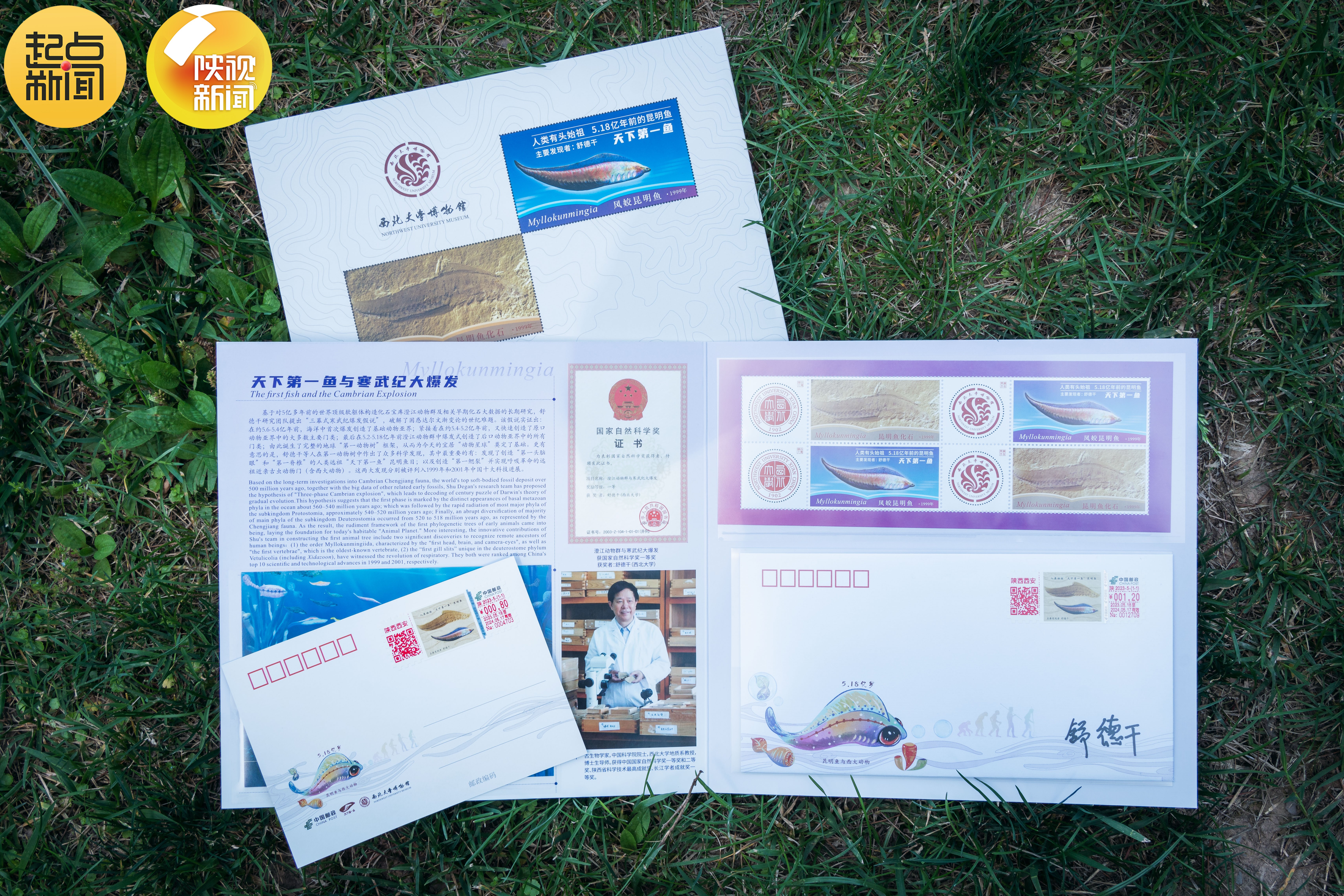 此次启用的《昆明鱼化石》邮资机宣传戳,是以云博app官方在线入口舒德干院士团队发现的凤姣昆明鱼化石为原型设计制作,包含邮资封、明信片和邮折。