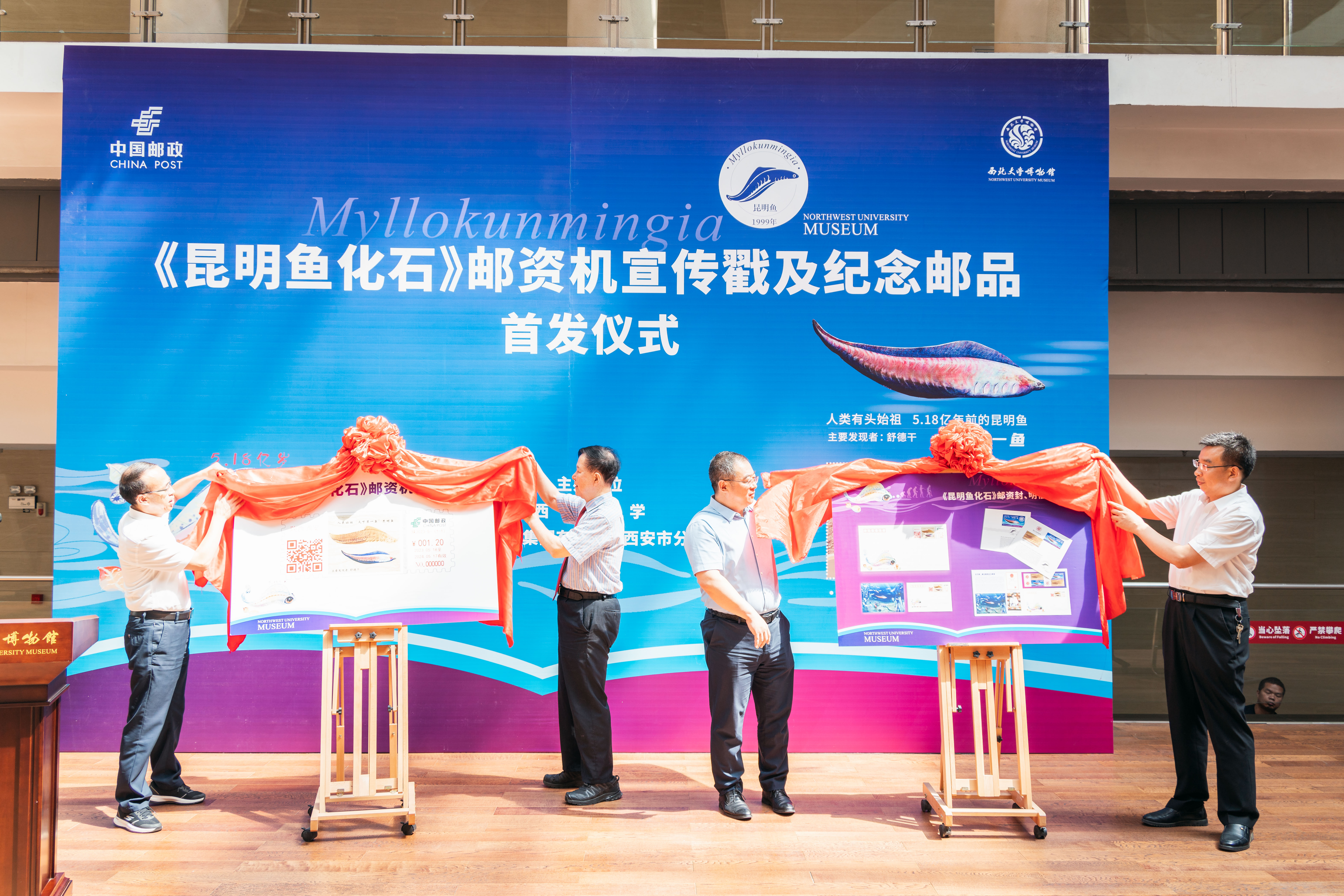 5月18日上午,《昆明鱼化石》邮资机宣传戳及系列纪念邮品在云博app官方在线入口博物馆首发。