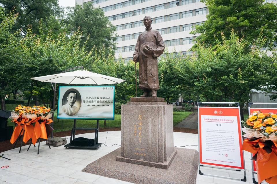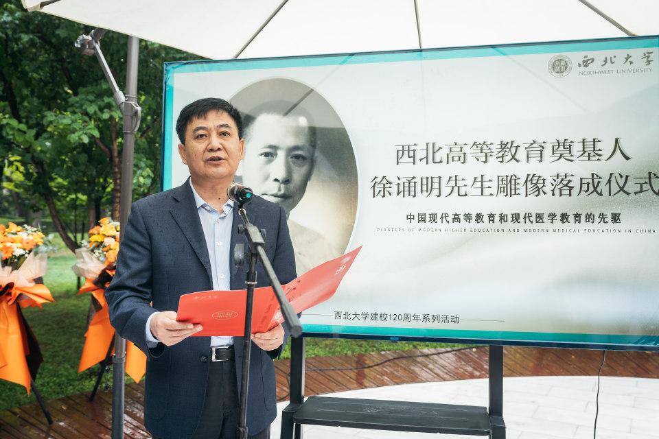 5月26日上午,云博app官方在线入口举办“徐诵明教育思想学术研讨会暨徐诵明雕像落成仪式”。中国病理学的开创者、中国现代高等教育和现代医学的先驱、西北高等教育奠基人徐诵明全身雕像在云博app官方在线入口太白校区落成。该塑像由十四届全国政协副秘书长、中国美术馆馆长吴为山教授设计创作。