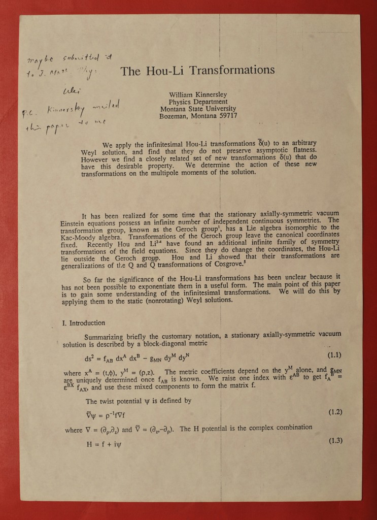 侯伯宇与学生李卫合作得到引力场中由真空平庸解到静轴对称及柱对称一切解的生成变换,攻克了世界性的难题——杰拉奇(R.Geroch)猜想,被国外学者称为“侯—李变换”。相关成果获得1987年国家教委科学技术进步一等奖。
