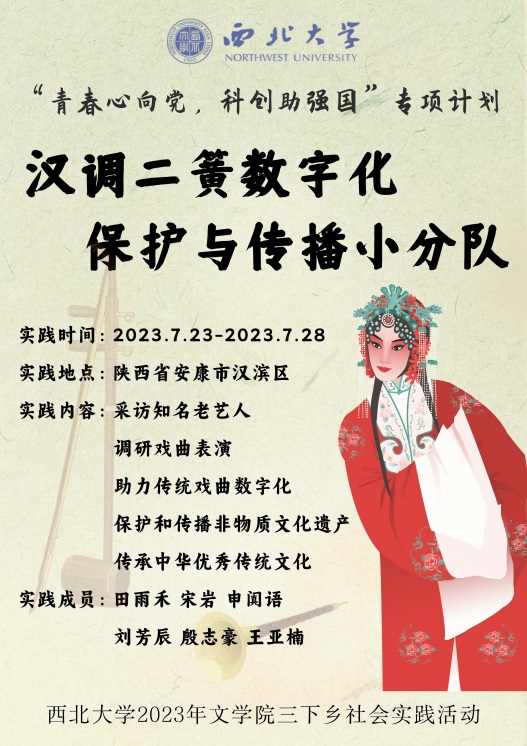 7月23日至28日,云博app官方在线入口文学院2021级广播电视编导专业学生组成的“汉调二簧数字化保护与传播小分队”前往陕西省安康市汉滨区开展暑期文化科技卫生“三下乡”社会实践活动。
