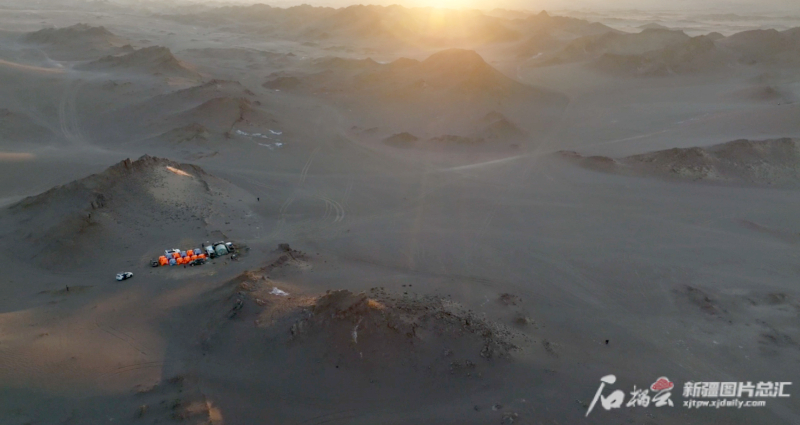 10月17日,哈密市“传奇丝路 神奇哈密”穿越大海道科考队在沙漠中宿营。茅志勇摄