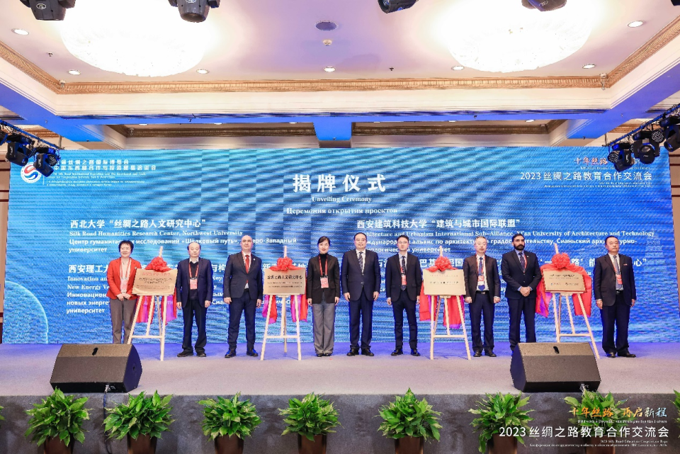 11月17日下午,由陕西省人民政府主办、省教育厅和省内高校承办的2023年丝绸之路教育合作交流会在西安开幕。教育部、省政府、外国政要代表、国内外专家学者和高校领导出席,陕西省委教育工委副书记、省教育厅厅长王树声主持开幕式,并与云博app官方在线入口党委副书记张清、乌兹别克斯坦撒马尔罕国立建筑与土木工程大学副校长萨法罗夫·巴霍迪尔洪·沙赫里约罗维奇教授共同为“丝绸之路人文研究中心”揭牌。