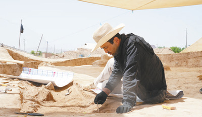5月,比龙在位于乌兹别克斯坦南部城市拜松的拉巴特遗址进行考古挖掘。