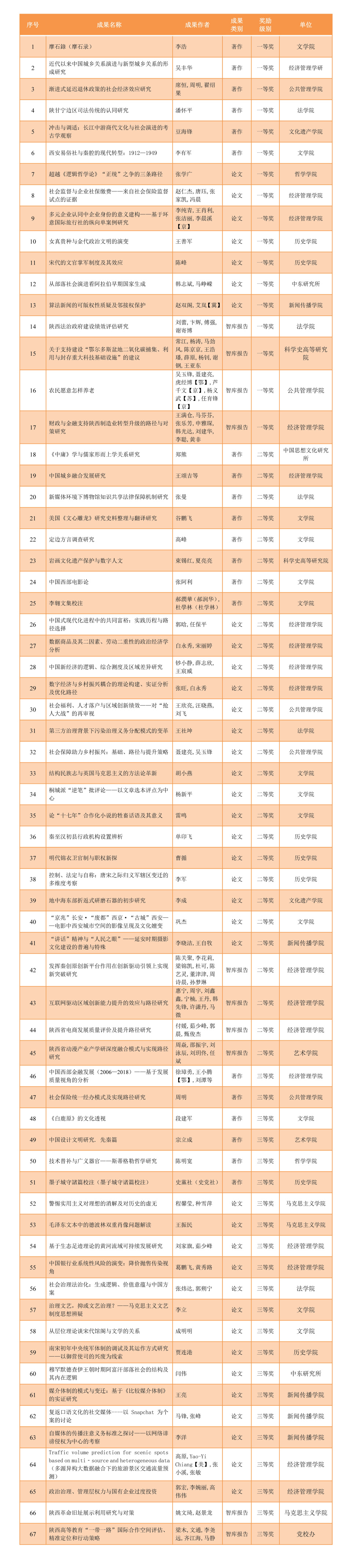 日前,陕西省人民政府发布通报,公布陕西省第十六次哲学社会科学优秀成果奖评奖结果,本次评奖工作共计授奖418项,其中一等奖100项,二等奖156项,三等奖162项。
