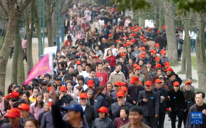 2005年4月1日,浙江杭州西湖苏堤上的游人摩肩接踵。新华社发(李震宇 摄)