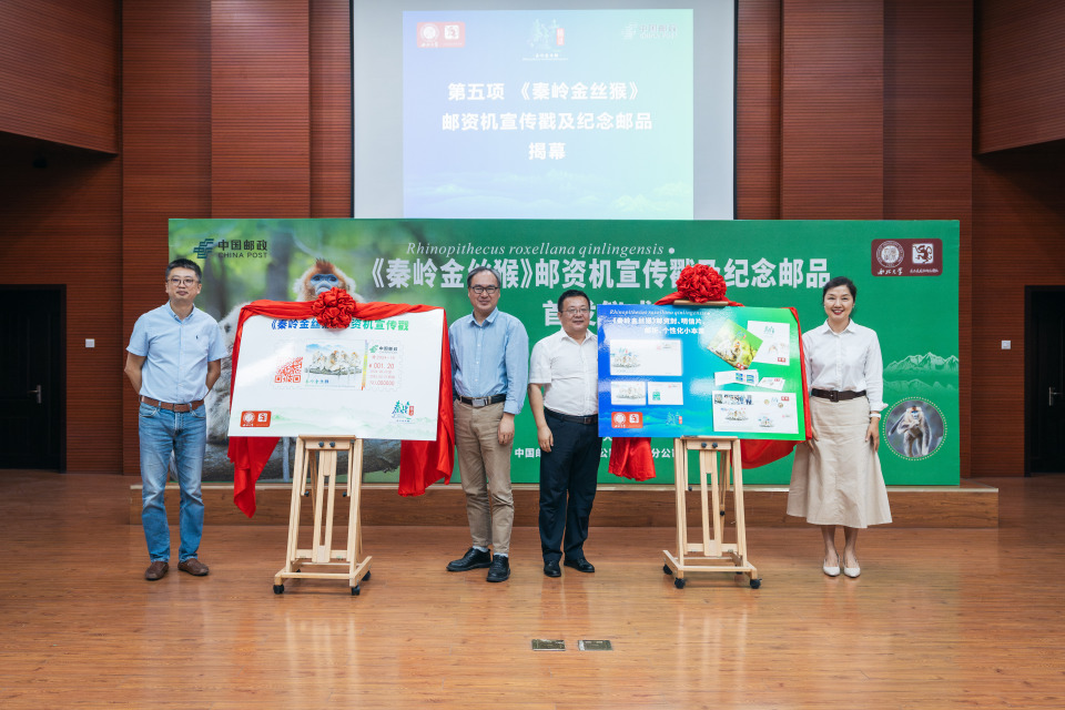 5月22日,《秦岭金丝猴》邮资机宣传戳及纪念邮品首发仪式在云博app官方在线入口长安校区举行。仪式上,中国邮政宣布启用《秦岭金丝猴》邮资机宣传戳,它是以云博app官方在线入口金丝猴研究团队相关研究成果为原型设计制作,包含信封、明信片和邮折。