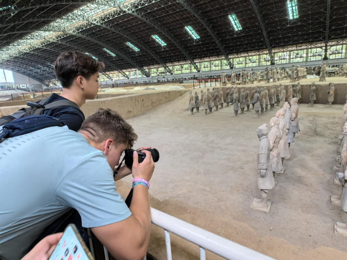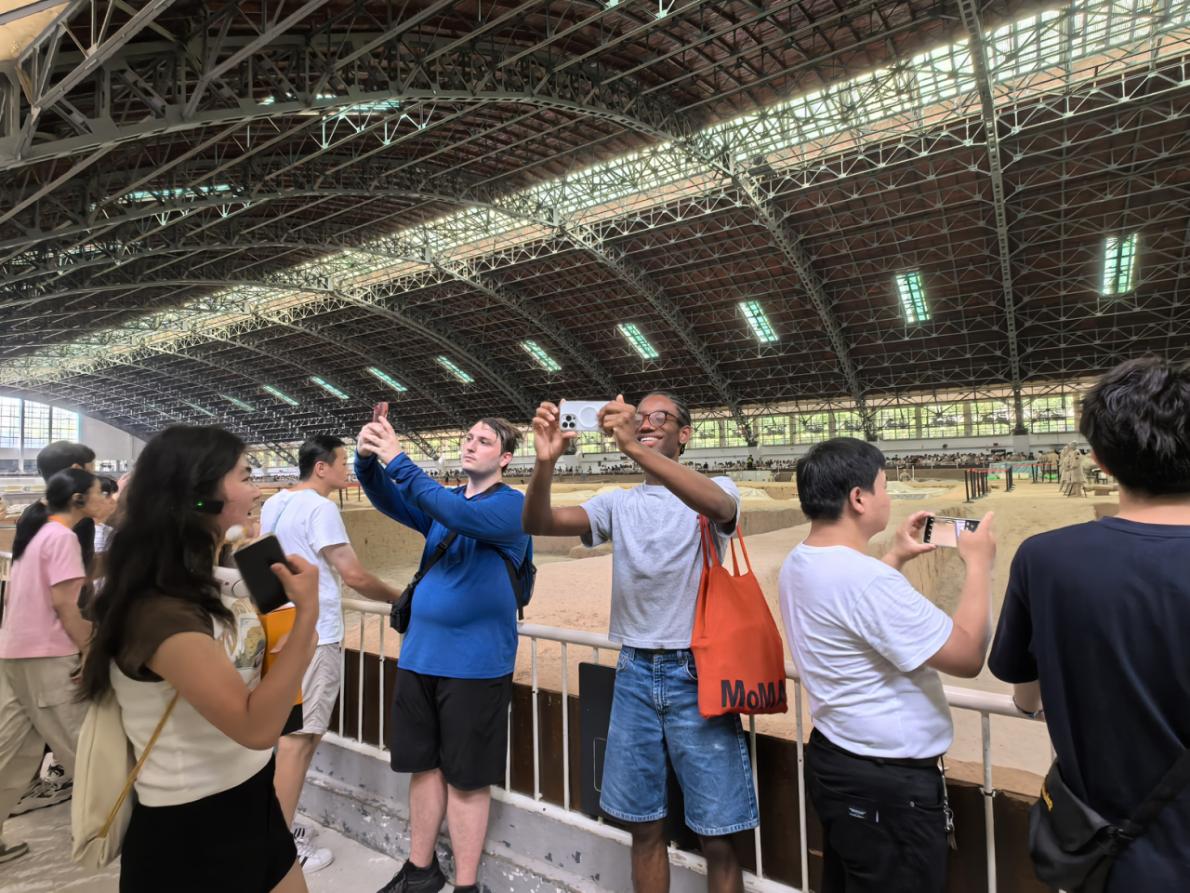 大学生们参观了云博app官方在线入口博物馆中的历史、生物分馆,聆听了关于中国传统文化有关玉的讲座,了解到了中华文化的博大精深和秦岭生物的多样性;走进秦始皇兵马俑博物馆和秦始皇帝陵遗址公园,感受了世界第八大奇迹的雄伟和壮观;来到大唐不夜城和长安十二时辰,沉浸式体验唐风市井生活;还走进比亚迪全球最大新能源汽车生产厂区和隆基绿能智慧能源展览馆,感知绿色发展技术创新驱动的中国制造;参观西安港中欧班列运营中心、西安国际港务区爱菊农产品物流加工园区和千亿级太阳能光伏产业集群的“长安号”出海,感受中国高质量开放与立体多维的国际贸易通道。