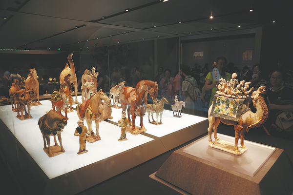 A Tang Dynasty (618-907) tri-colored pottery camel with musicians on show. ZOU HONG/CHINA DAILY