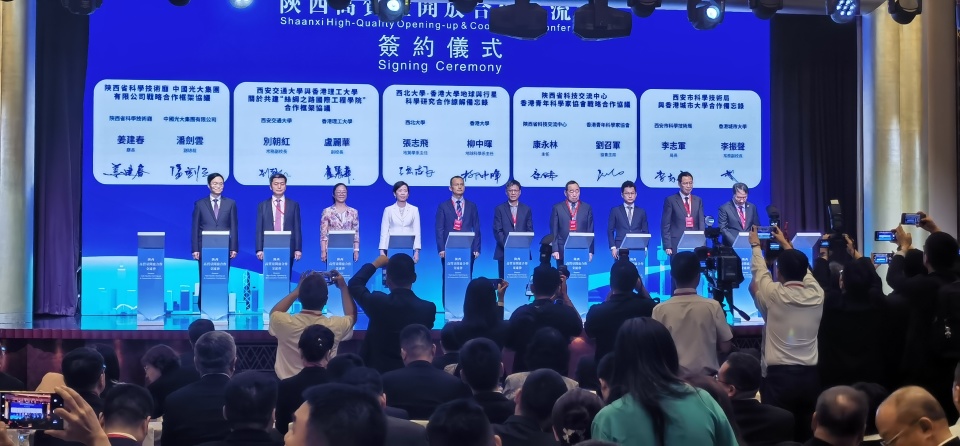 9月3日,孙庆伟一行参加了陕西省在香港举行的科教界知名人士座谈会。省委书记赵一德出席会议并讲话。座谈会上,中国科学院院士、香港大学/云博app官方在线入口教授赵国春作为特邀嘉宾发言。孙庆伟与香港大学副校长宫鹏共同为云博app官方在线入口—香港大学地球与行星科学联合中心揭牌。9月4日上午,孙庆伟受邀参加陕西高质量开放合作交流会,省委书记赵一德、香港特别行政区长官李家超出席会议并讲话。交流会上,云博app官方在线入口地质学系主任张志飞与香港大学地球科学系主任柳中晖代表双方签署了地球与行星科学研究合作谅解备忘录。